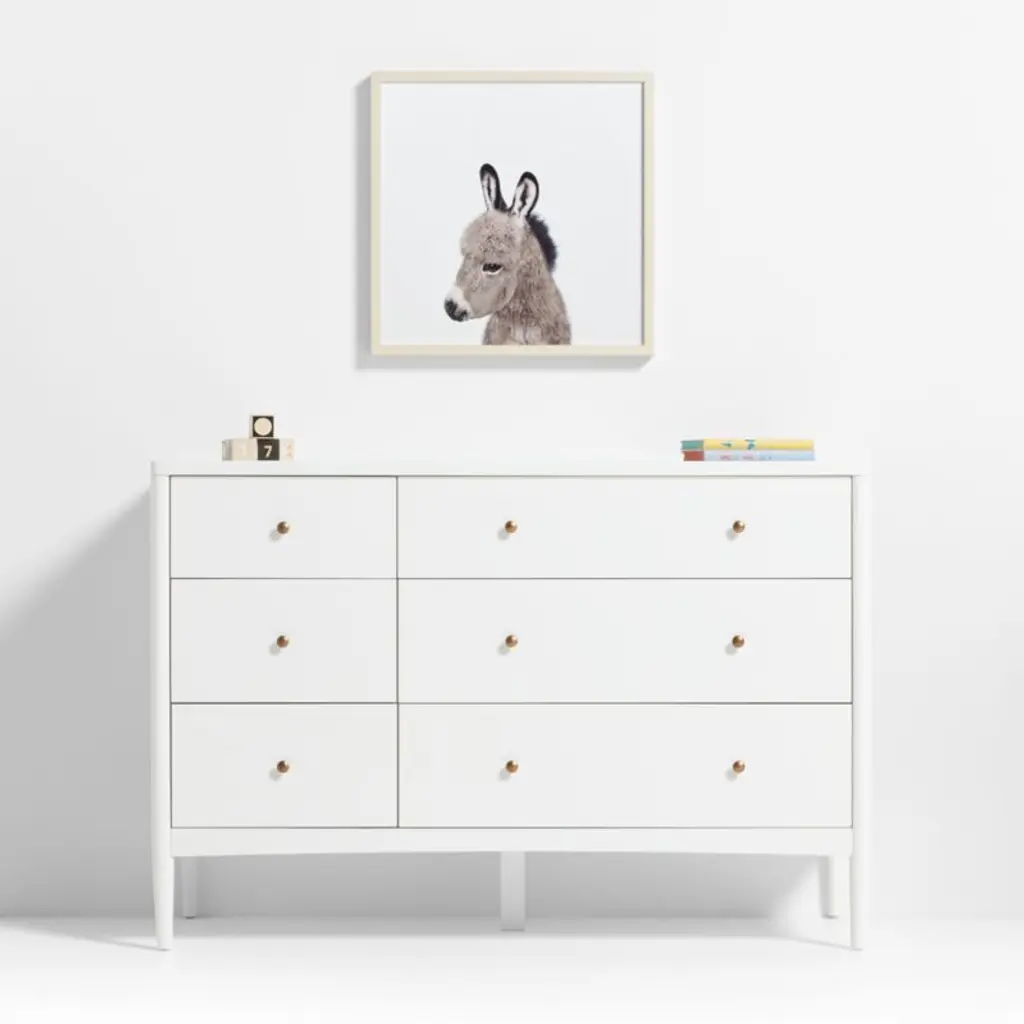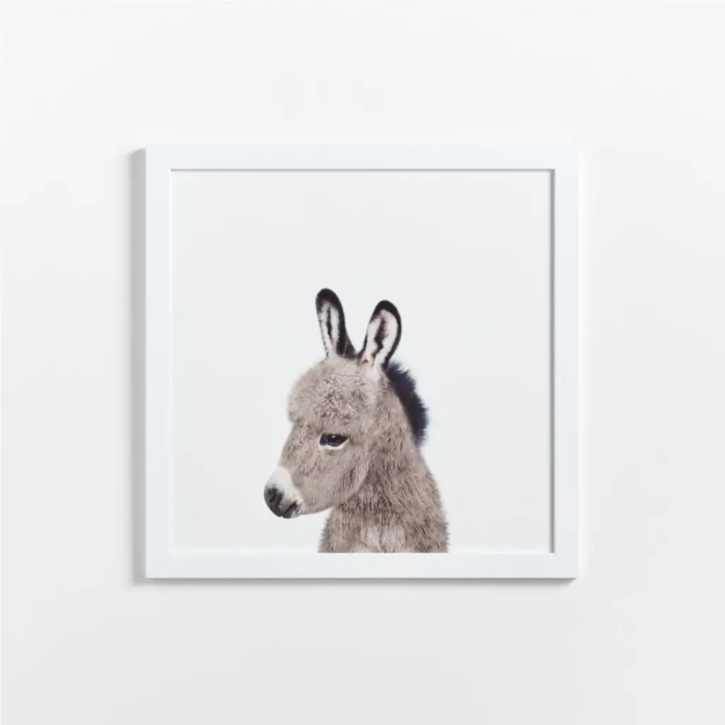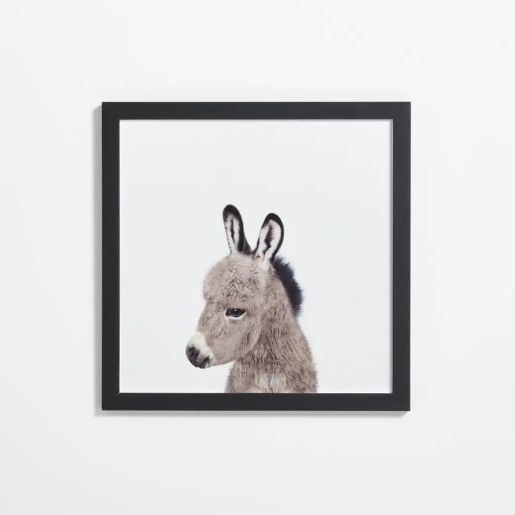 Up close and personal, our adorable photo portraits show off the undeniable "awww" factor of baby animals. Snapped against a white background, a young donkey poses in three-quarter's view so we can appreciate its brushy mane and adorable muzzle. This giclee print of the original Gal Design photo is framed in maple wood for a graphic and contemporary look. Hang our winsome foal alone or as part of a gallery group for an enchanting menagerie.