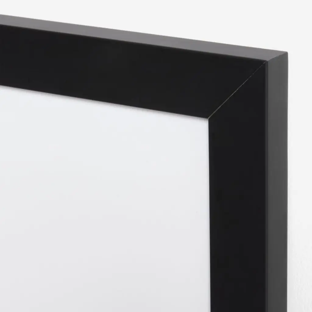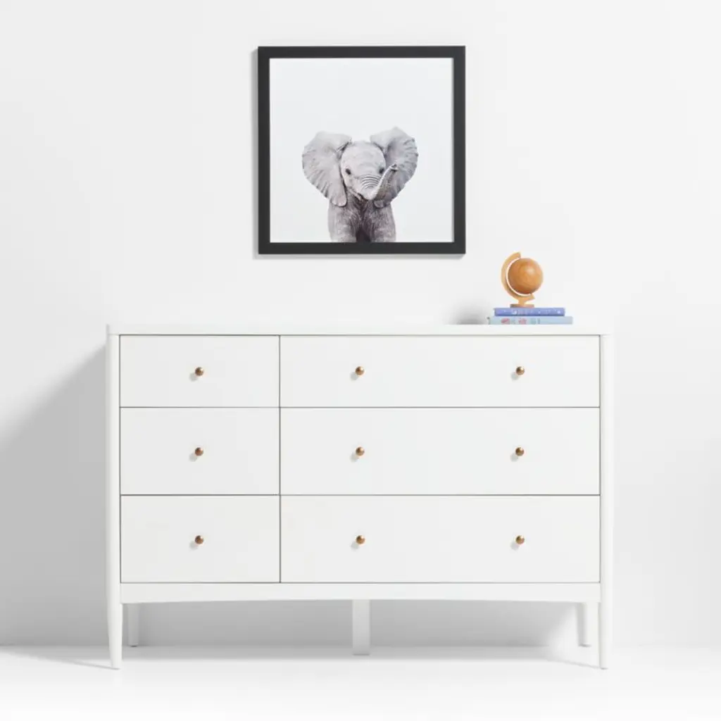 Up close and personal, our adorable photo portraits show off the undeniable "awww" factor of baby animals. Snapped against a white background, a young elephant looks right into the camera to show off its puffed-out ears and flexible trunk. This giclee print of the original Gal Design photo is framed in black wood for a graphic and contemporary look. Hang our winsome calf alone or as part of a gallery group for an enchanting menagerie.