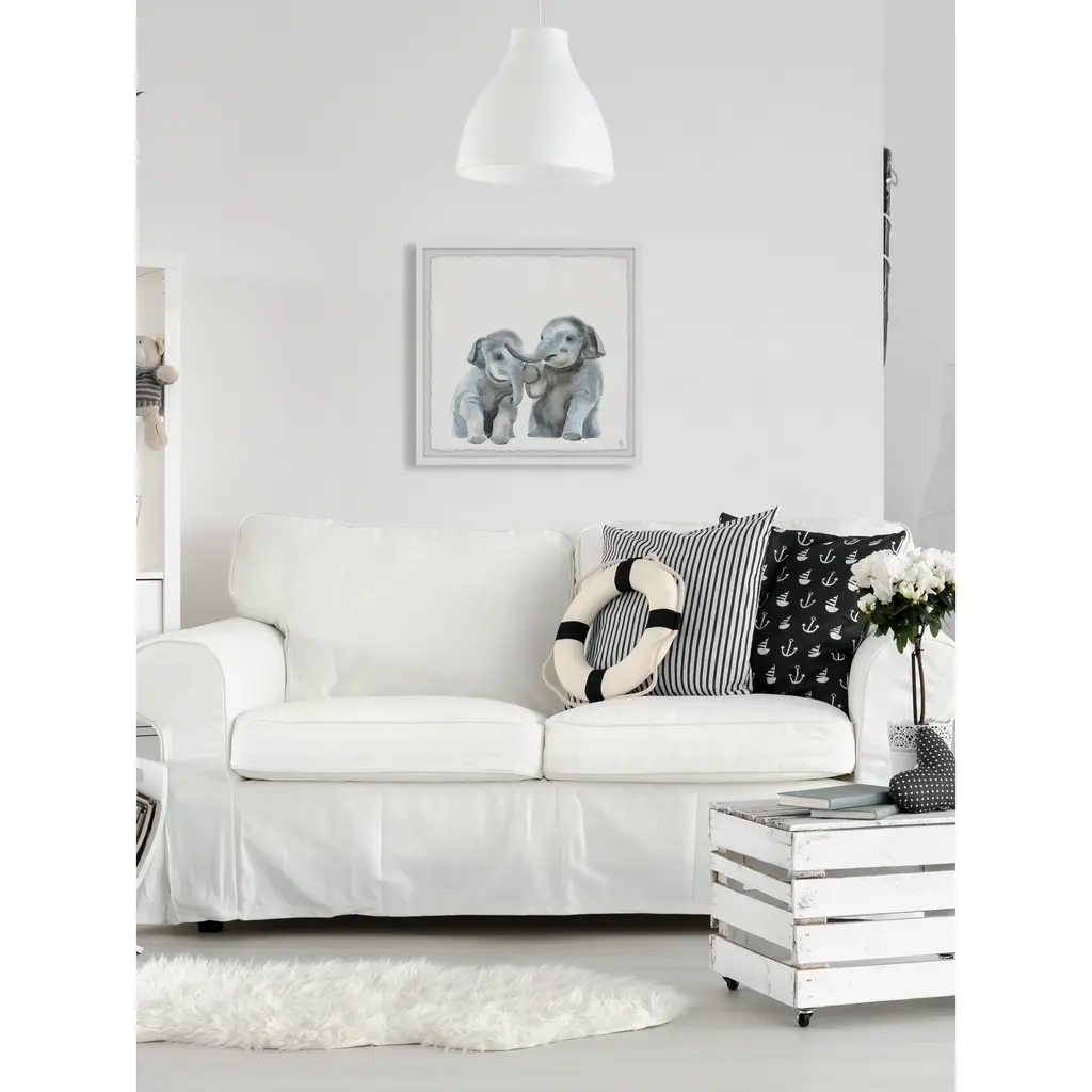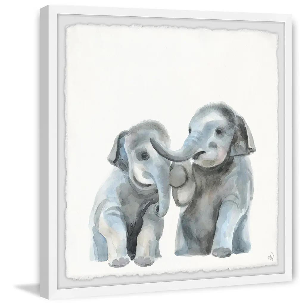 'Baby Elephants' Framed Painting Print - Multi-Color - 18 X 18