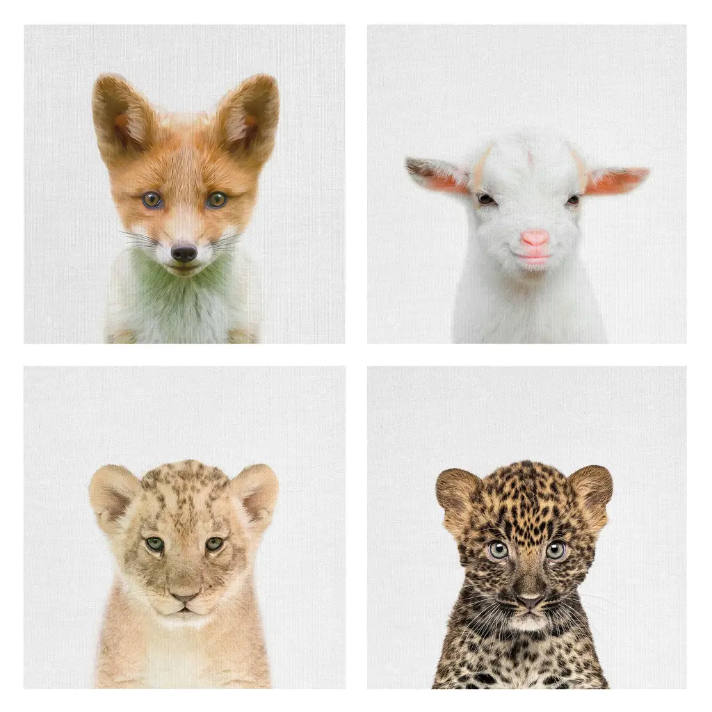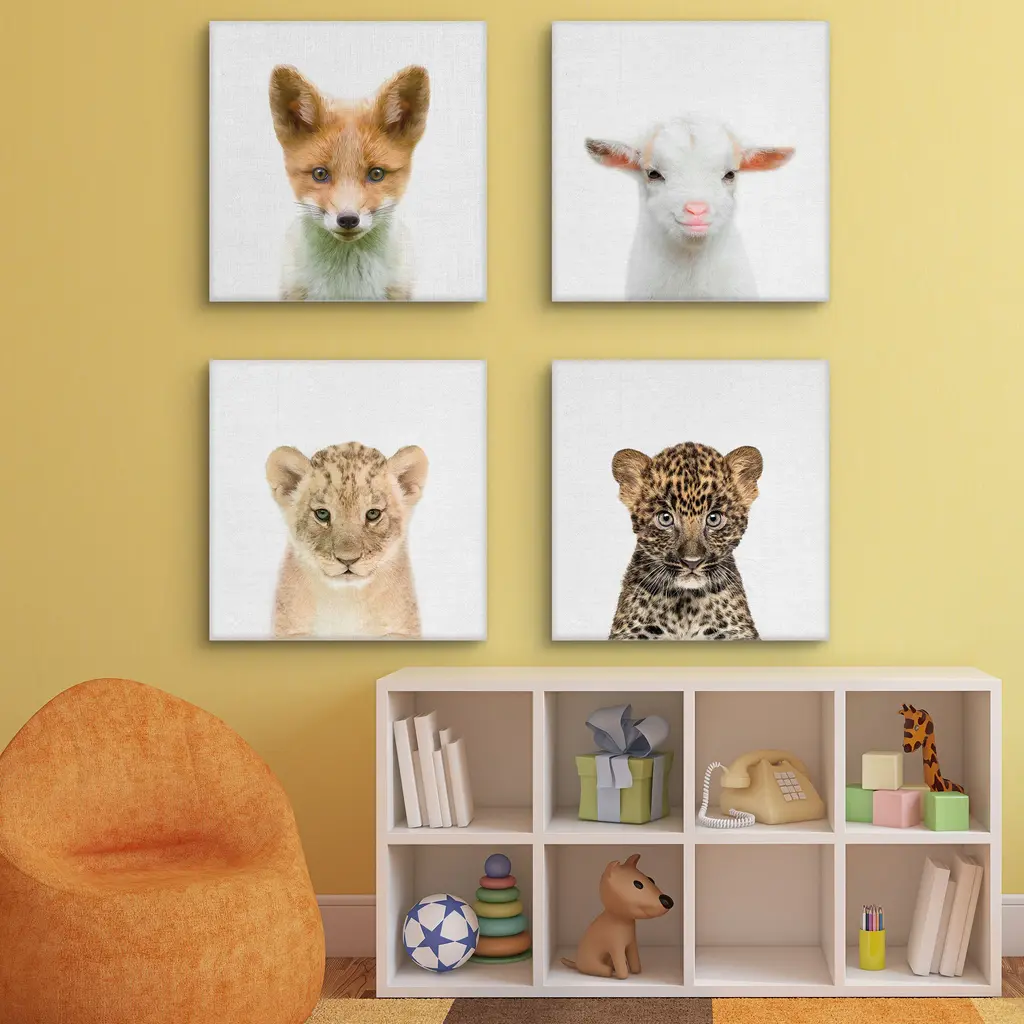 Baby Fox Square, Baby Goat, Baby Lion, Leopard By Tai Prints Canvas Art Prints - 16x16x4