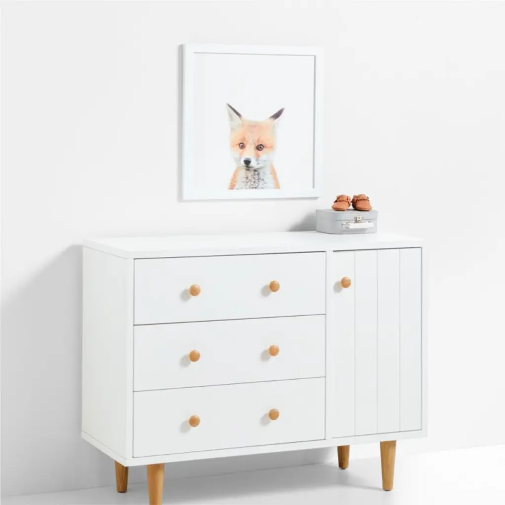Up close and personal, our adorable photo portraits show off the undeniable "awww" factor of baby animals. Snapped against a white background, a young fox looks right into the camera to show off its pert pointed ears and big, almond-shaped eyes. Each giclee print of the Gal Design photo is framed in white wood for a graphic and contemporary look. Hang our winsome kit alone or as part of a gallery group for an enchanting menagerie.