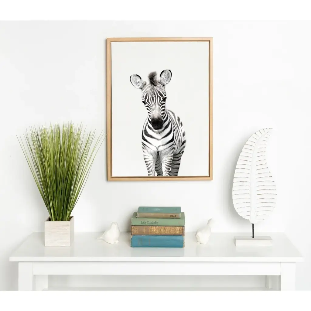 Up close and personal, our adorable photo portraits show off the undeniable "awww" factor of baby animals. Snapped against a white background, a young zebra looks right into the camera to show off its brushy forelock and impressive black-and-white stripes. Each giclee print of the original Gal Design photo is framed in maple wood for a graphic and contemporary look. Hang our winsome foal alone or as part of a gallery group for an enchanting menagerie.