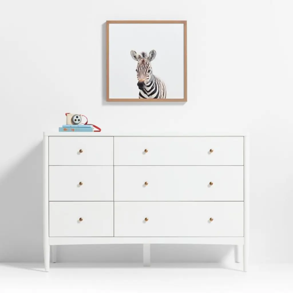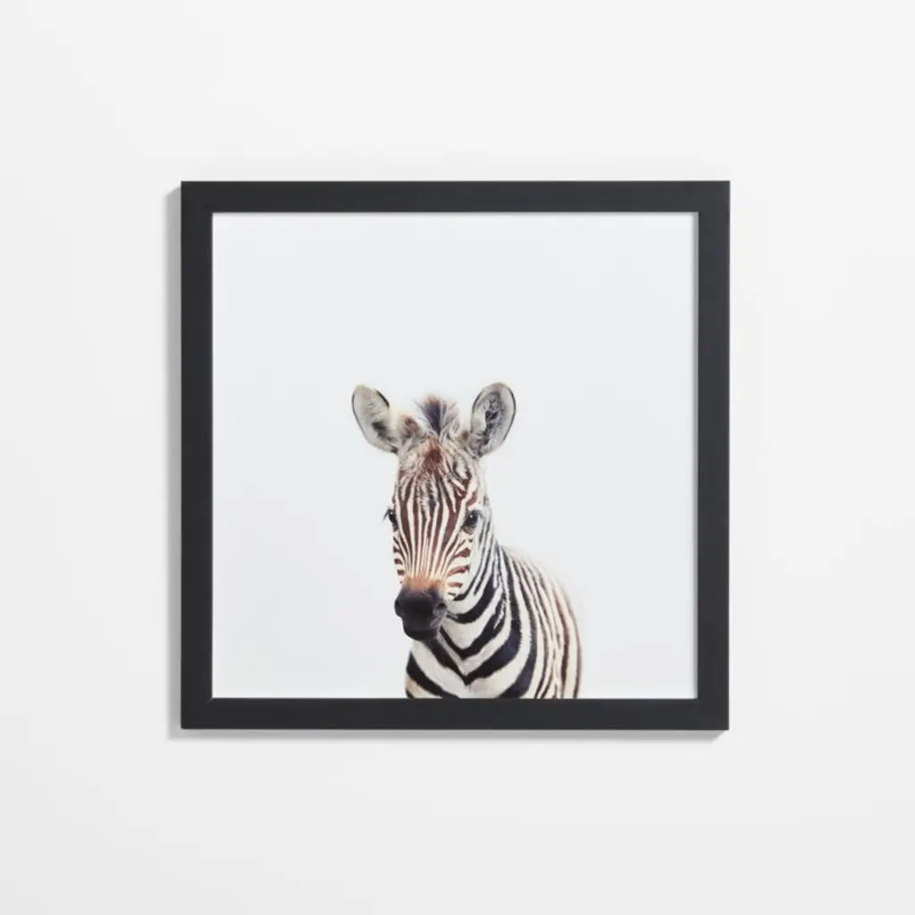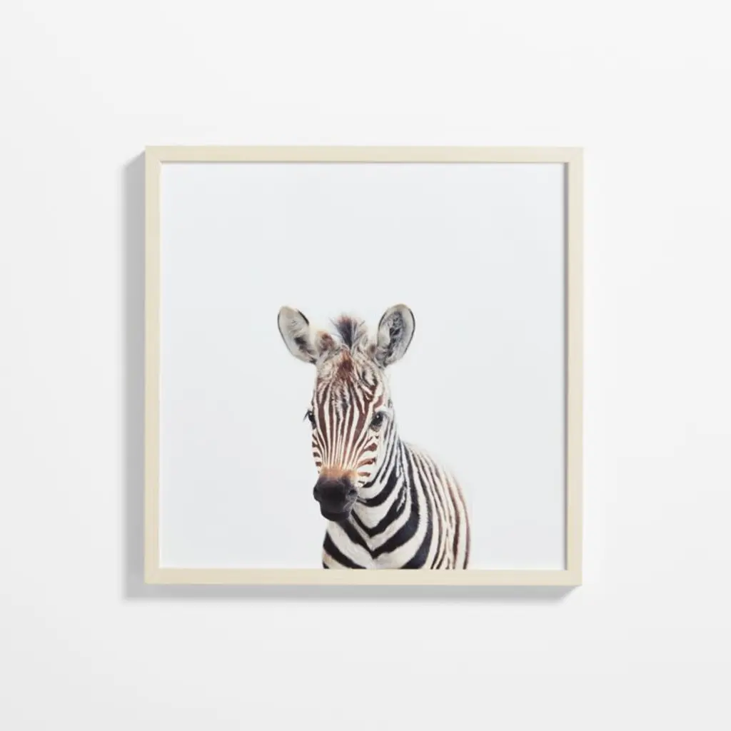 Up close and personal, our adorable photo portraits show off the undeniable "awww" factor of baby animals. Snapped against a white background, a young zebra looks right into the camera to show off its brushy forelock and impressive black-and-white stripes. Each giclee print of the original Gal Design photo is framed in walnut wood for a graphic and contemporary look. Hang our winsome foal alone or as part of a gallery group for an enchanting menagerie.