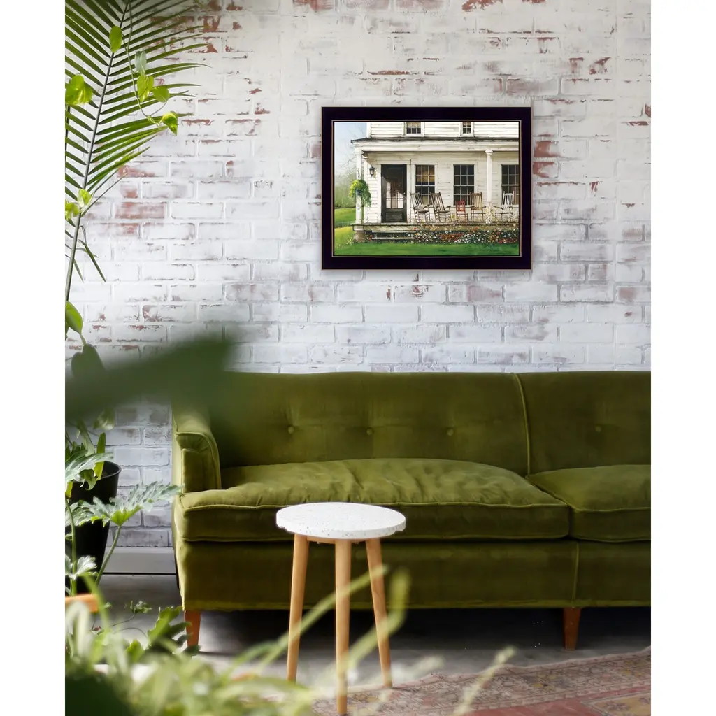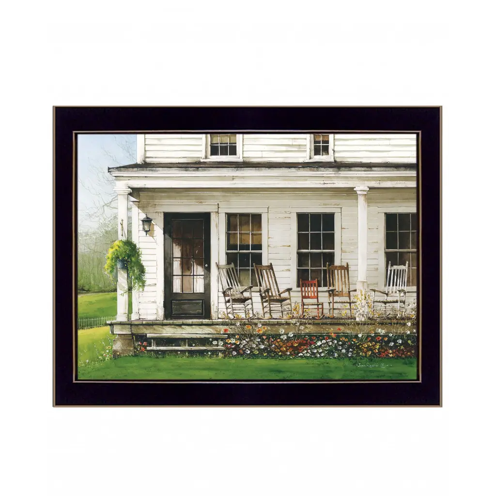 Add an air of fashion to your room and rejuvenate the space with this back porch gathering 2 black framed print wall art. This print is a visual artistic expression that allows you to decorate your space in style. Reproduced for you on paper, this hanging decorative accent will be a trendy and fashionable way to dress your walls. Adding this hanging wall art to your space to make your room feel more finished and attractive. Utilize this opportunity to create a focal point in the room with this fabulous wall decor option. 21" H x 27" W x 1" D