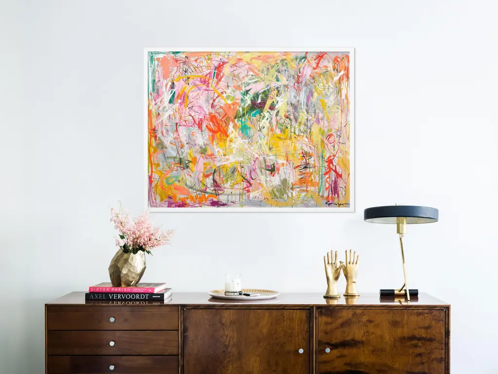 DESCRIPTION: Back to Life by Lesley Grainger in White Frame, Medium Art Print SPECIFICATIONS: Type: Framed Paper. Framed Size (in): 36x28. Orientation: Horizontal. Flush/Float/Matted: Flush. Frame Color: White. Hanging Hardware: Picture Perfect. FRAMING: Each art work arrives framed and ready to hang. We use handmade frames with a plexiglass glazing front, because it offers less glare than standard glass. At this time, we only offer framed prints. ARTIST BIO: Lesley Grainger was born in Yorkshire, England, where she grew up in a small Northern fishing town and currently resides in Orange County, California. She received a B.A. in Illustration and Design from the University of Lincoln. Early in her career, she worked as graphic designer and later began to produce children’s books and licensed artwork. For the last several years her main focus and passion has been abstract painting. She works intuitively and thoughtfully while discovering new and interesting colors and compositions. Painting is a reflection of experience and what Lesley has found is that each painting is translated to the next, like an ongoing story. Discovery is key in Lesley's expression, as she works with the canvas, adding and removing elements. This pushes her to new levels and brings a sense of how art can change the way we think, feel, and connect with the world.