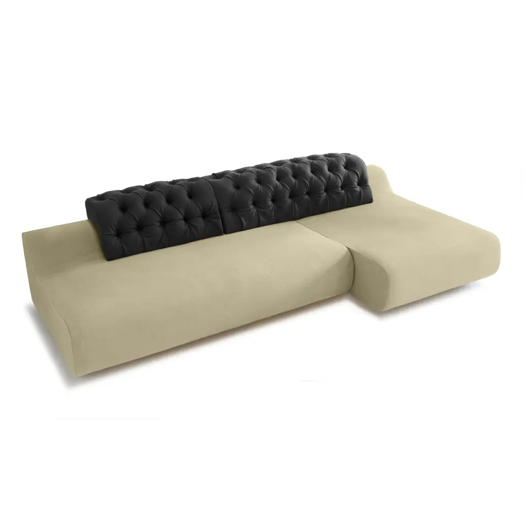 Modern luxury: baco daybed & sectional indulge in the epitome of modern luxury with the baco daybed, a multifaceted gem within sara ferrari's exclusive baco collection. Meticulously crafted from 100% natural materials, this daybed seamlessly combines sustainability with style. Its rounded form, reminiscent of lazy afternoons, invites you to unwind in the lap of comfort. a playful twist is introduced through the whimsical backrest adorned in vibrant velvet or felt, showcasing sara ferrari's signature design flair. This daybed is not just furniture; it's a contemporary art piece that effortlessly transforms into a sectional for those seeking versatility in their living spaces. The movable capitonné style backrest, a testament to ferrari's innovation, allows you to curate your comfort. embrace the minimalistic design, fresh fabric upholstery, and contrasting backrest, and elevate your home with the baco daybed — a celebration of natural materials and sophisticated living. Your space, your style, redefined. materials internal frame: solid dried beech wood, jute belts with steel springs. padding: 100% natural latex, pressed cotton. finishing: choice of 100% natural fabrics (linen, cotton, cotton velvet, natural mixes), steel and cotton zippers, removable cover (capitonne backrest is removable by an expert upholsterer). Labeled by maker