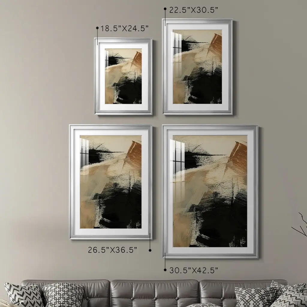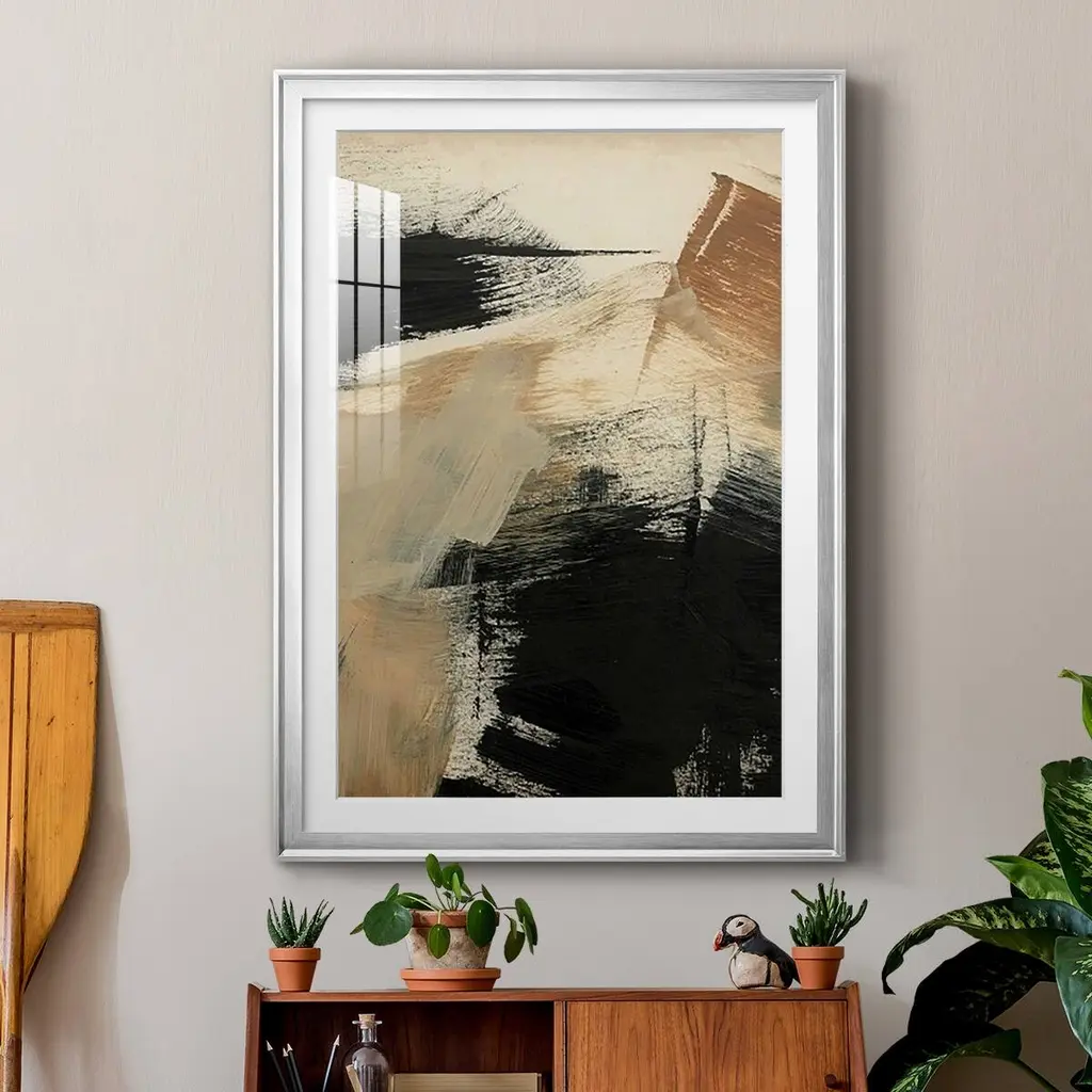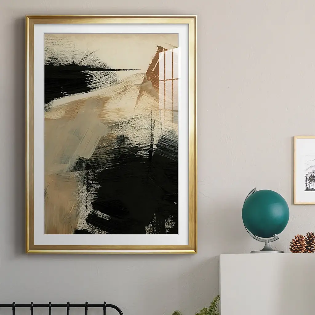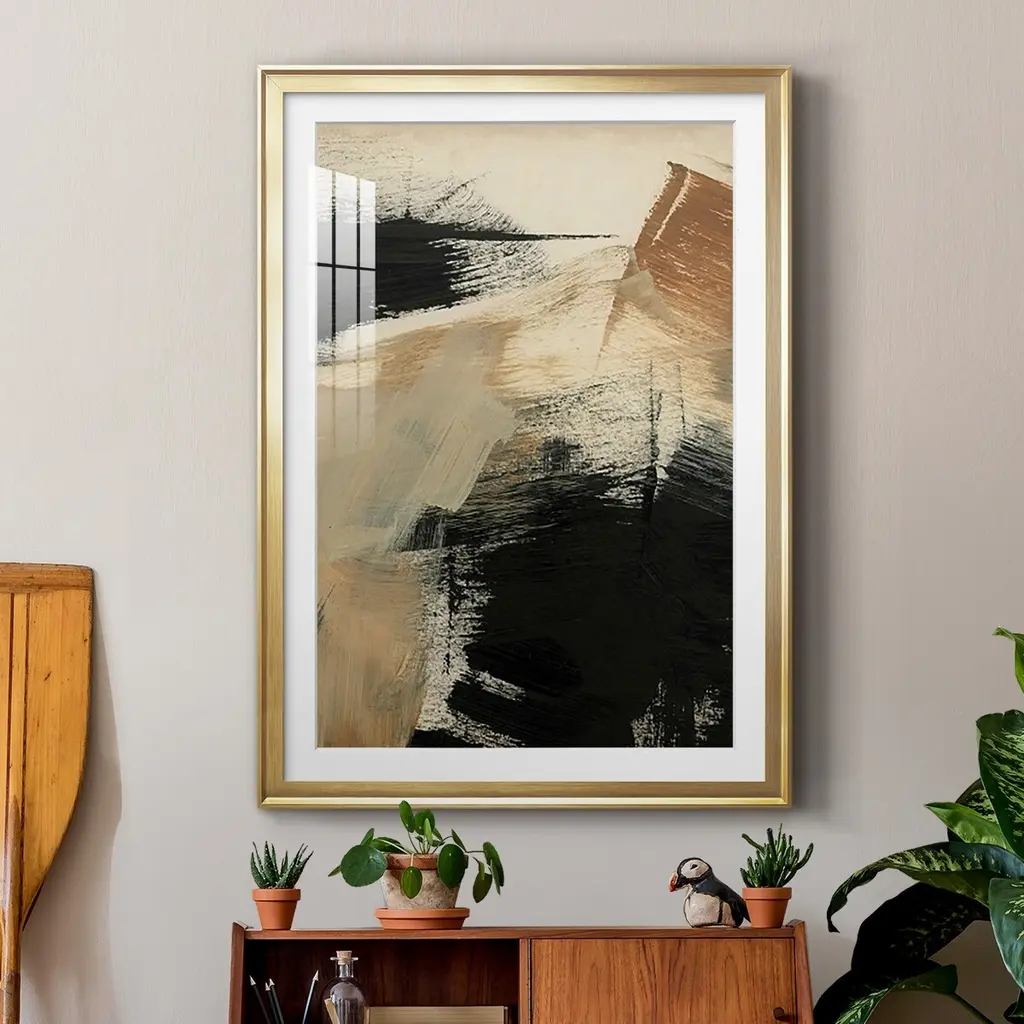 Baked Paintstrokes III Premium Framed Print - Ready to Hang A Premium Framed Print created to last. Framed in distressed wood and available in an array of sizes and colors Featuring a beveled a solid wood stretcher bar, each piece comes ready to hand 4 SIZES AVAILABLE 30.5''X42.5'' - Overall Size 26.5'X36.5'' - Overall Size 22.5''x30.5'' - Overall Size 18.5''x24.5'' - Overall Size Each piece is made to order. Each piece comes with hanging hardware. Made in the USA Ready to Hang Giclee Paper Print Acrylic Glass Beveled Matt Board
