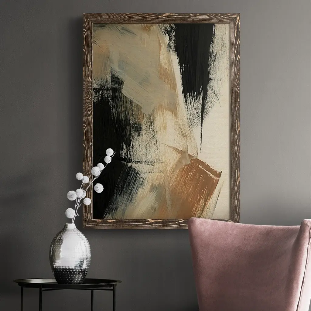 Baked Paintstrokes V-Premium Framed Canvas - Ready To Hang - 27.5x37.5 - Black