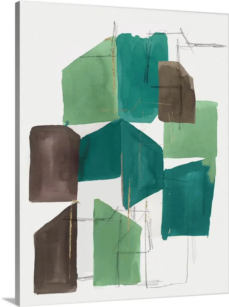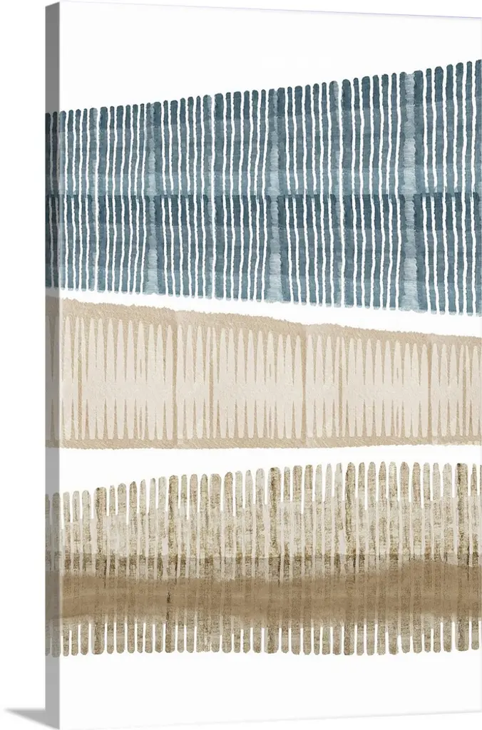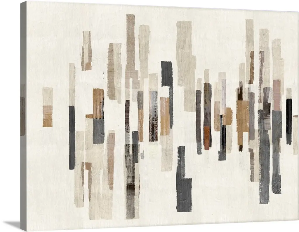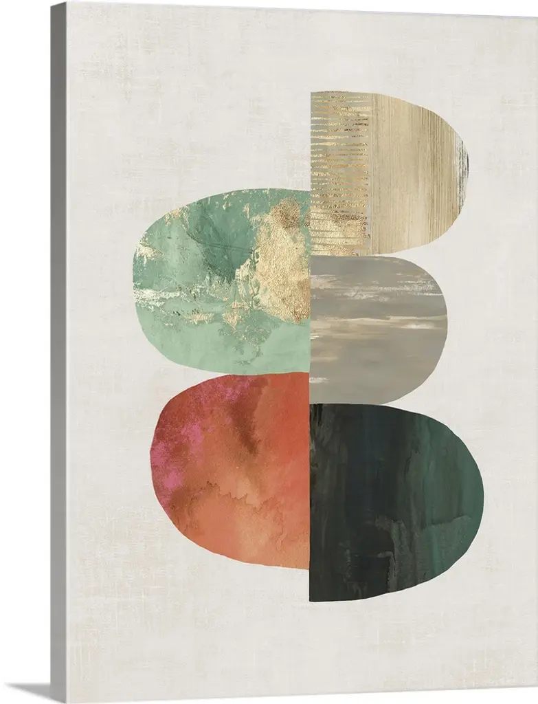 Mid-century inspired abstract artwork using muted colors in stacked rectangular shapes.