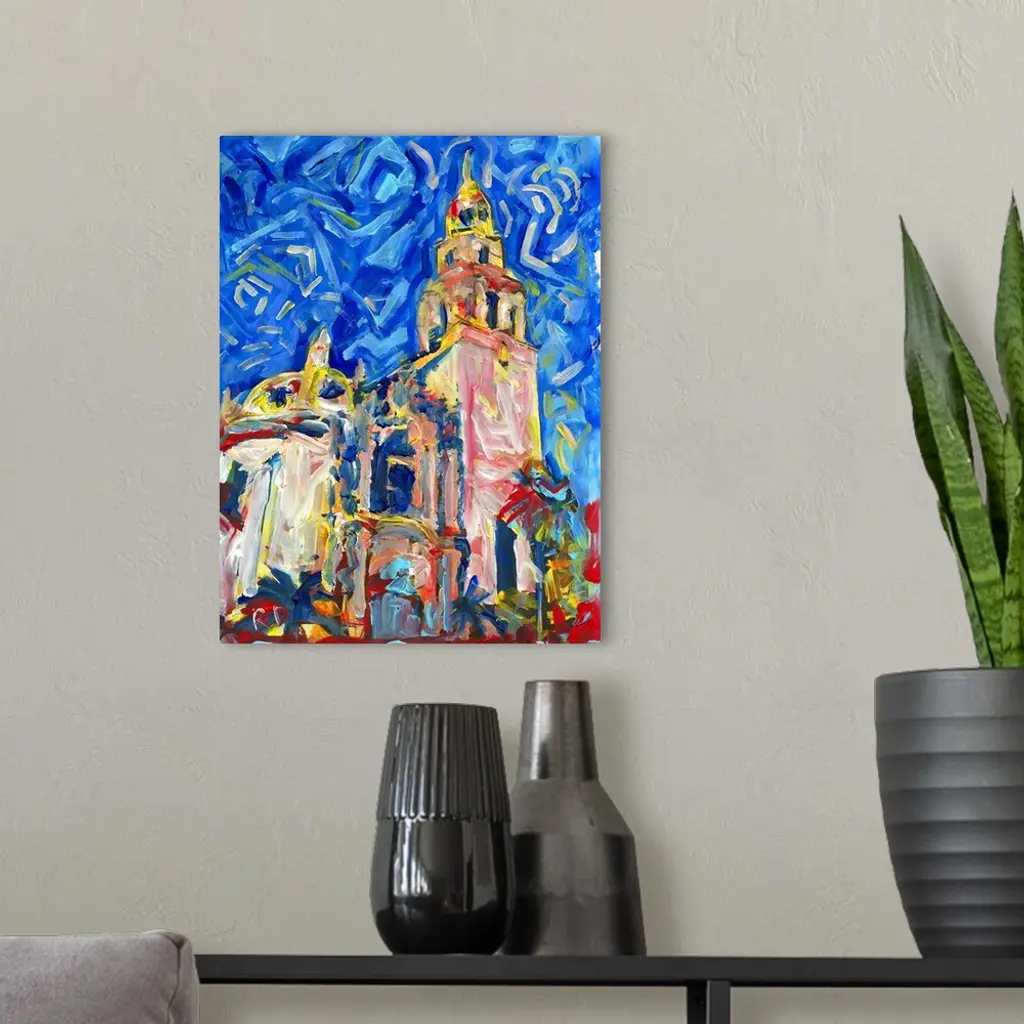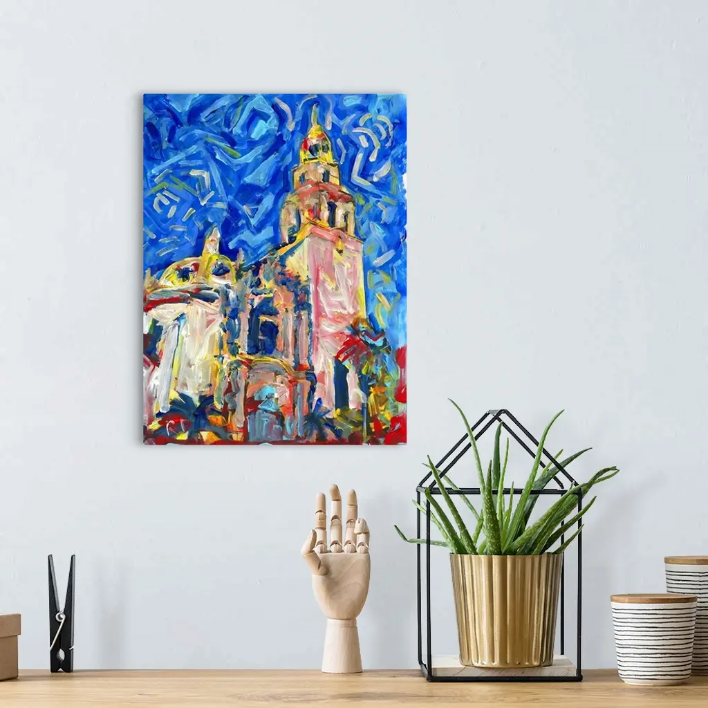 Balboa Park, San Diego, California Tower, painting by RD Riccoboni, Contemporary art with broad brushstrokes.