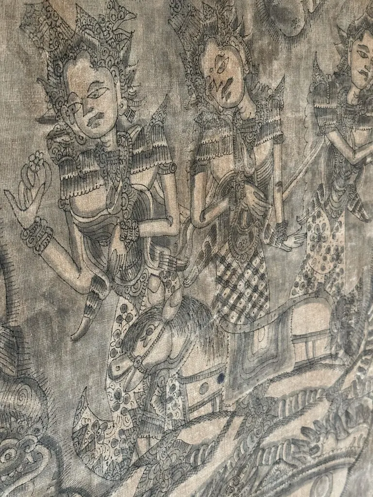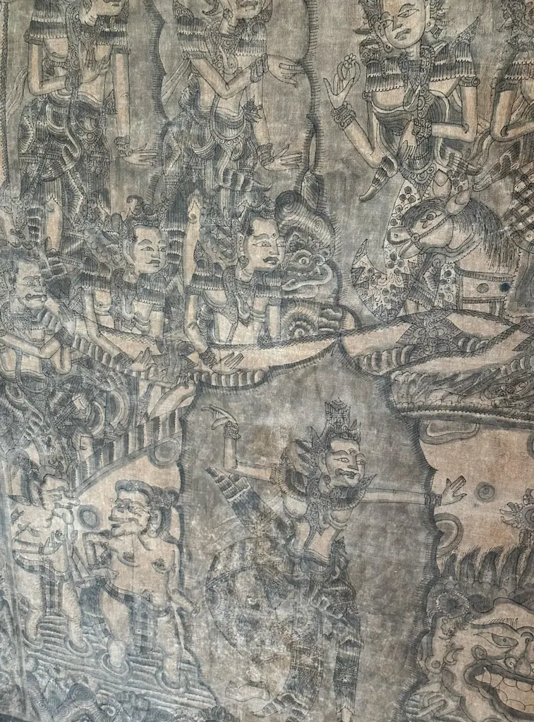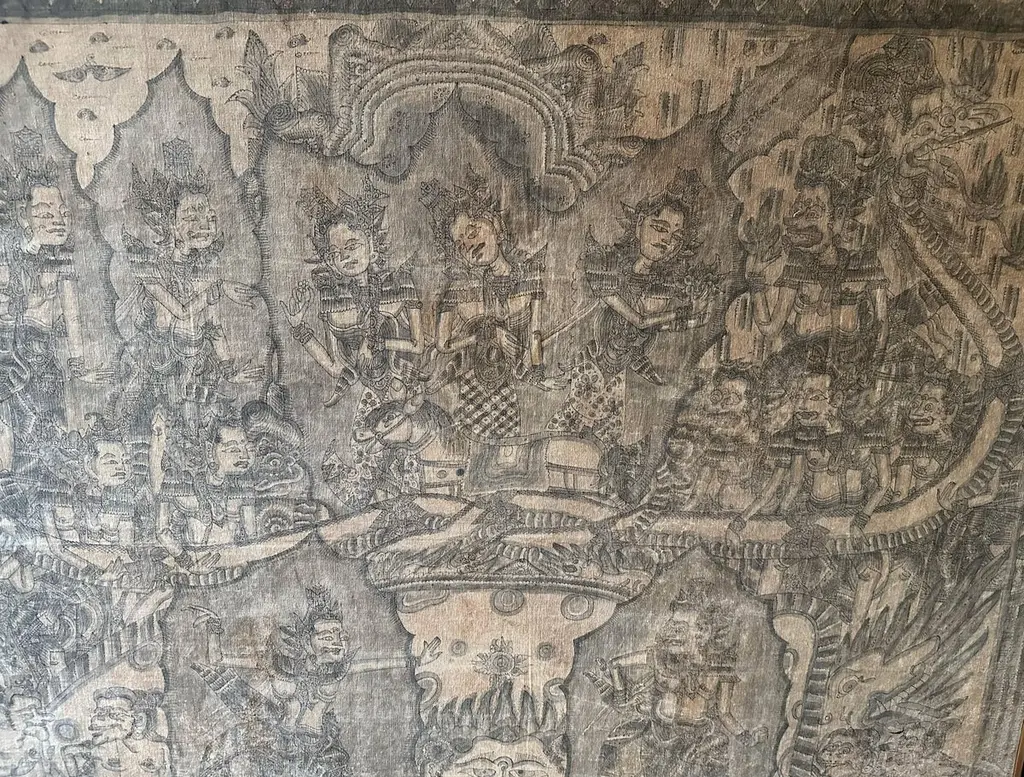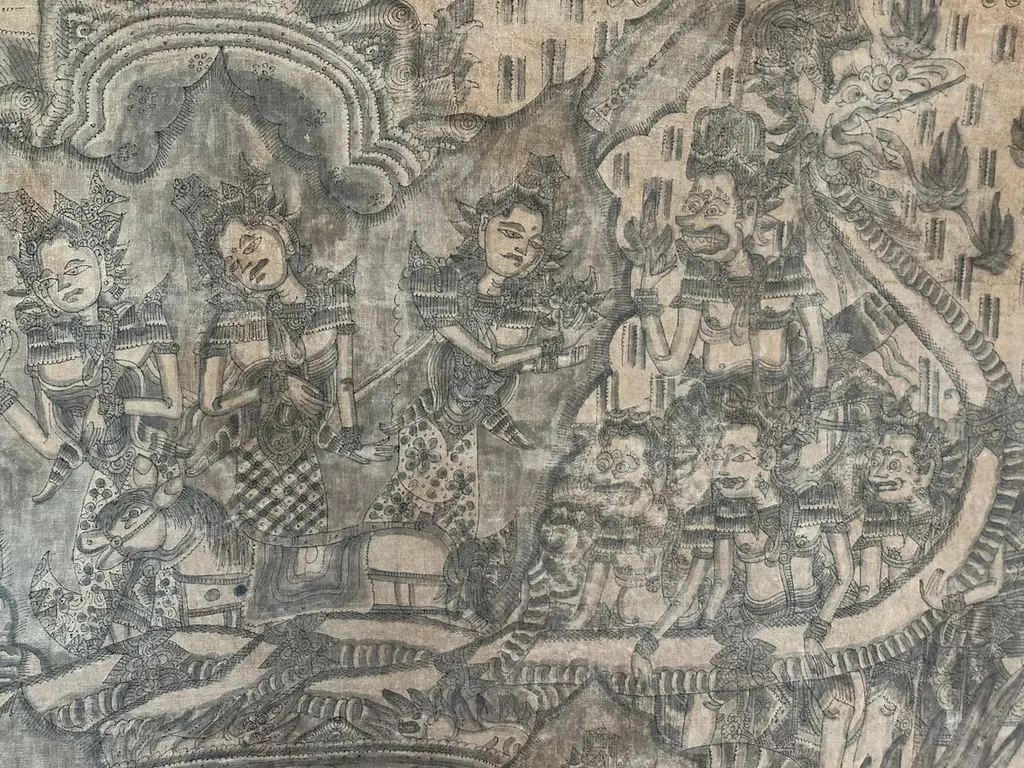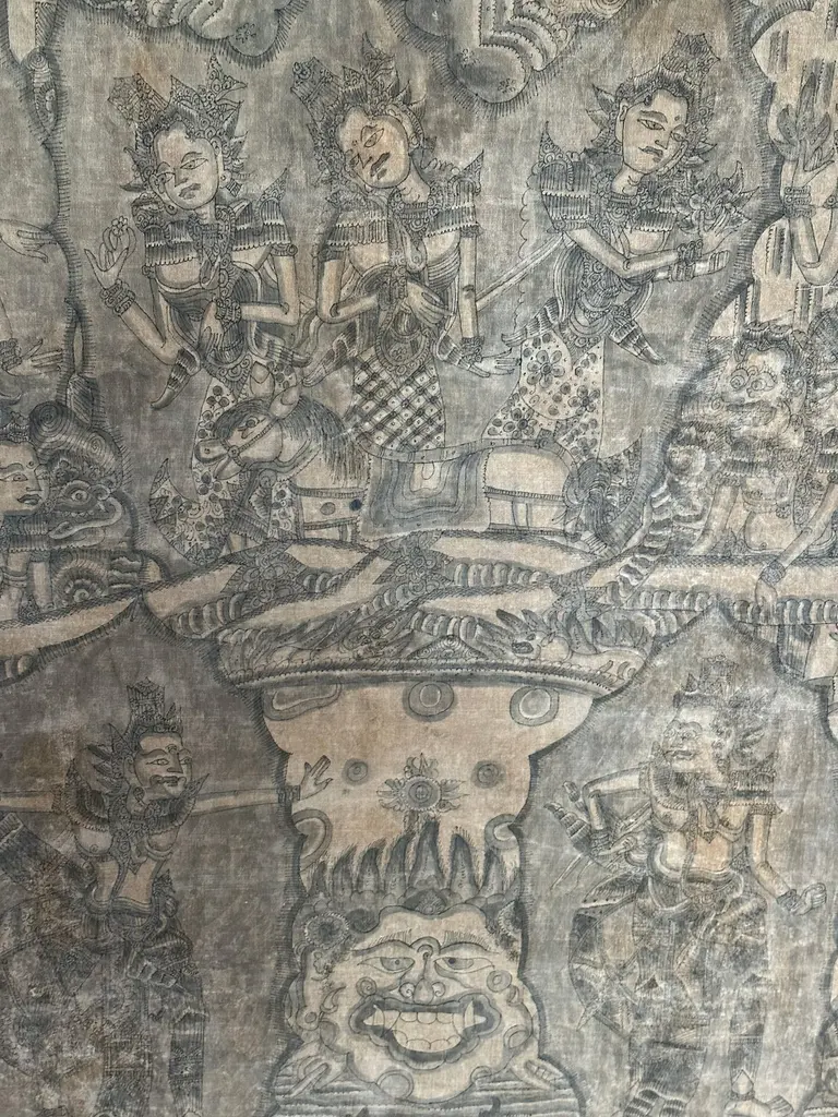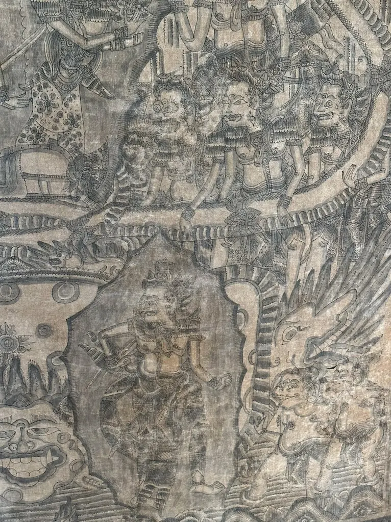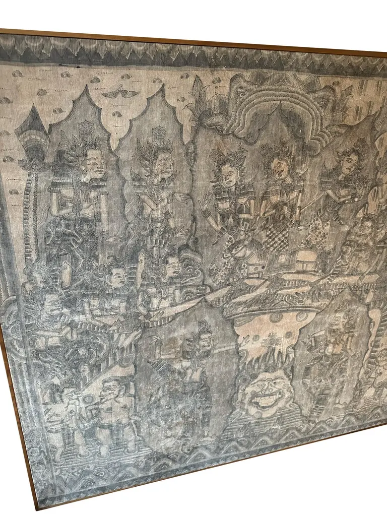 Bali Hindu Textile Framed 'Kamasan' Painting, Indonesia C. 1920