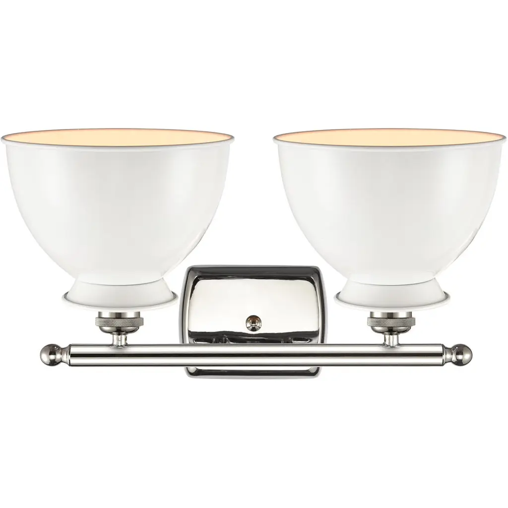 Ballston Adirondack 2 Light 18 Inch Polished Nickel Bath Vanity Light Wall Light In Incandescent, Glossy White, Ballston