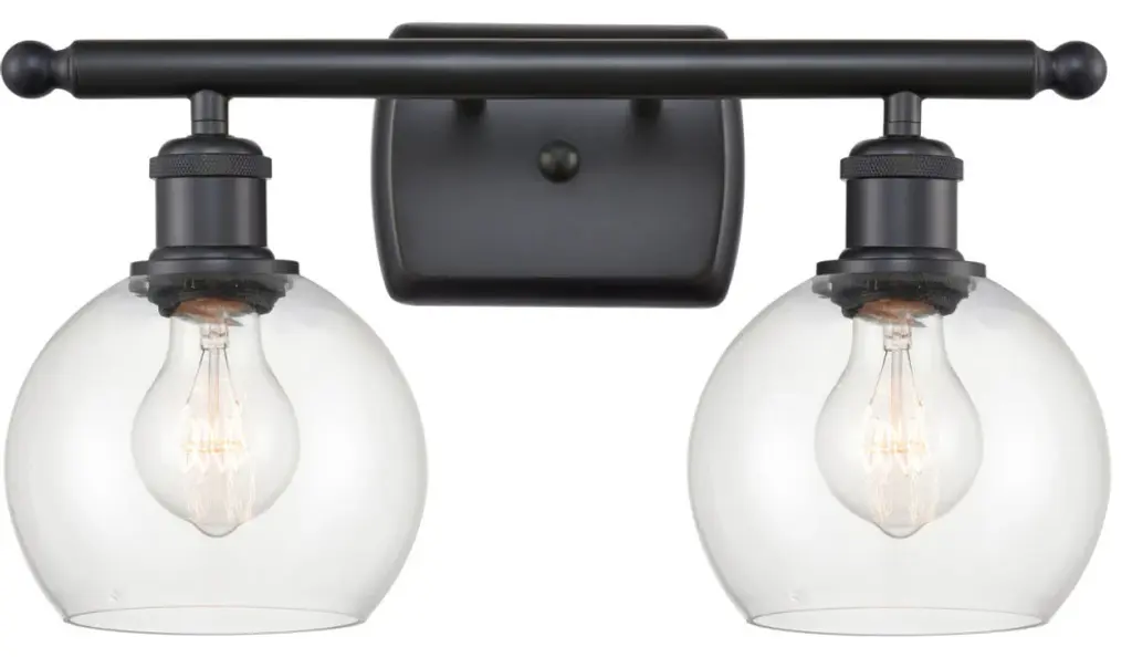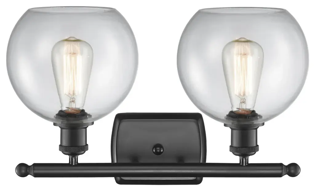 Ballston Athens 8" - 2 Light 18" Bath Vanity Light, Matte Black, Clear
