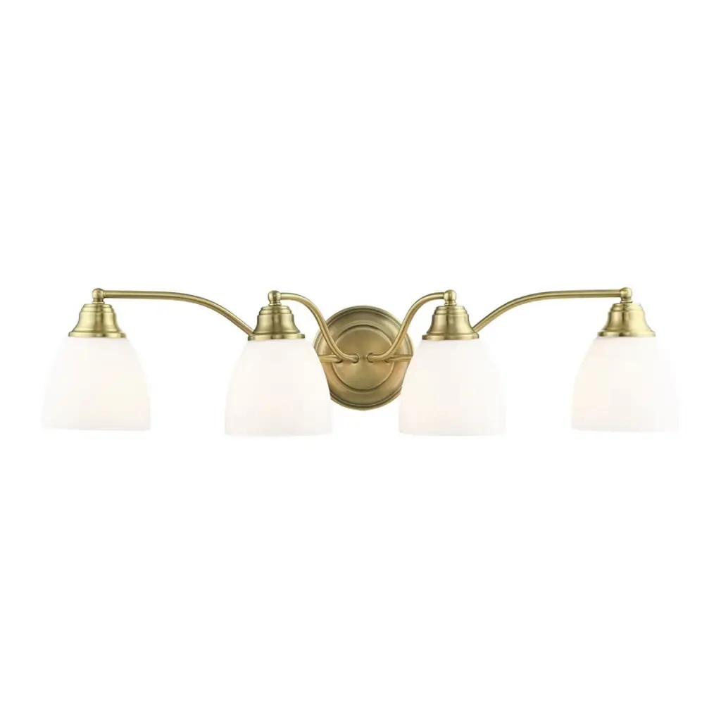 Ballston Athens Led 36 Inch Antique Brass Bath Vanity Light Wall Light In Matte White Glass