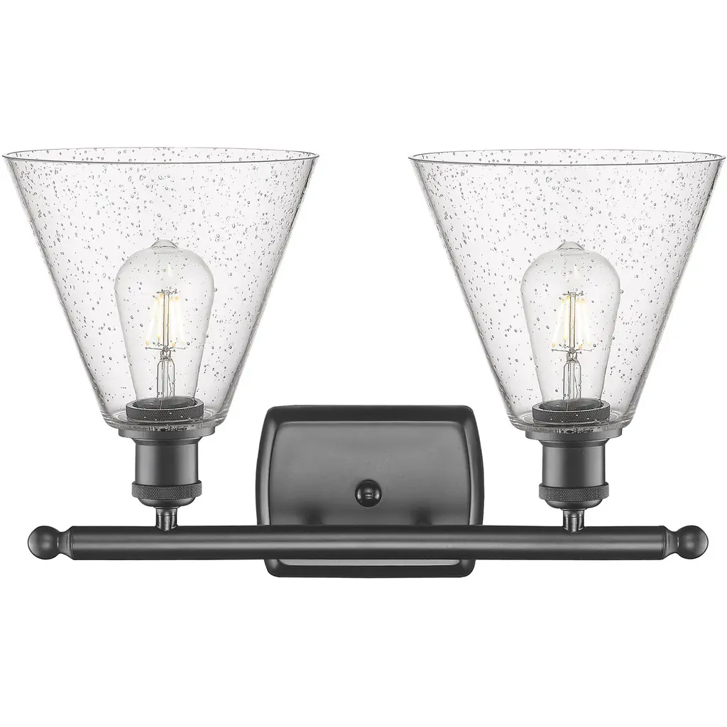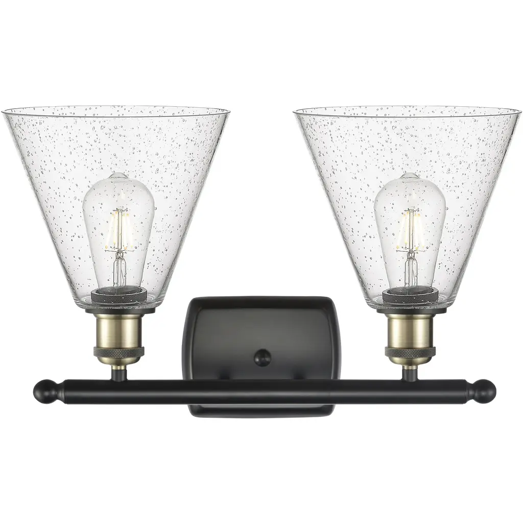 Ballston Ballston Cone 2 Light 18 Inch Matte Black Bath Vanity Light Wall Light In Seedy Glass
