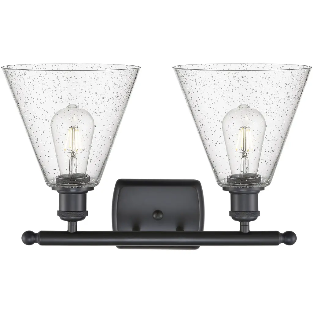 Ballston Ballston Cone 2 Light 18 Inch White And Polished Chrome Bath Vanity Light Wall Light In Seedy Glass