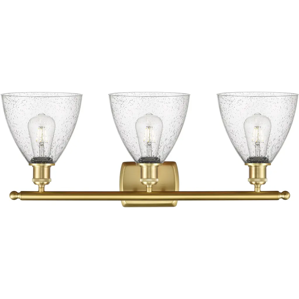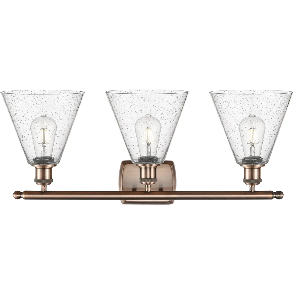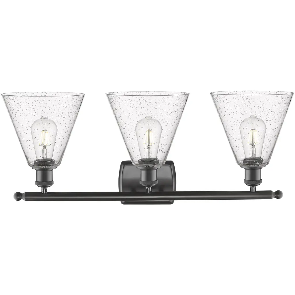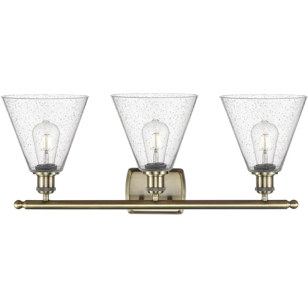Ballston Ballston Cone 3 Light 28 Inch Black Antique Brass Bath Vanity Light Wall Light In Seedy Glass