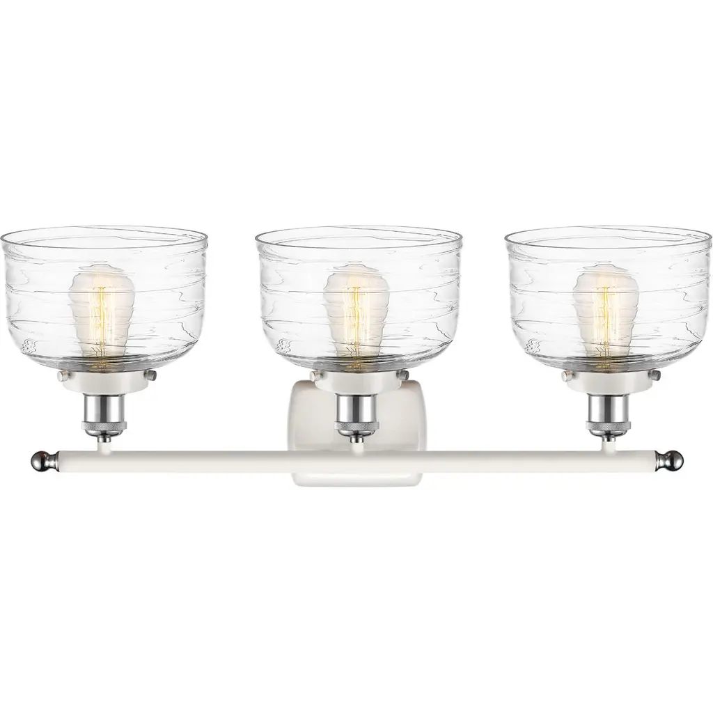 Ballston Bell Led 26 Inch White And Polished Chrome Bath Vanity Light Wall Light In Clear Deco Swirl Glass