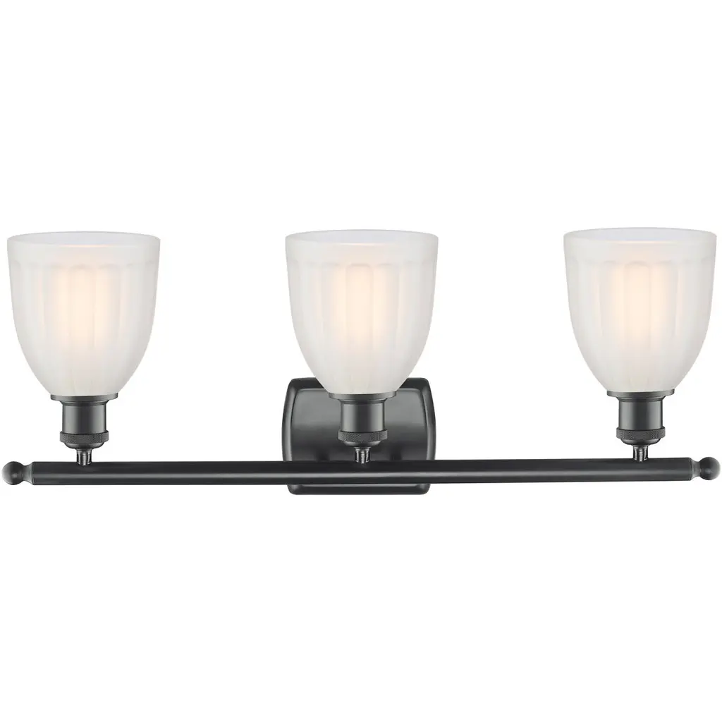Ballston Brookfield 3 Light 26 Inch Matte Black Bath Vanity Light Wall Light In White Glass, Ballston