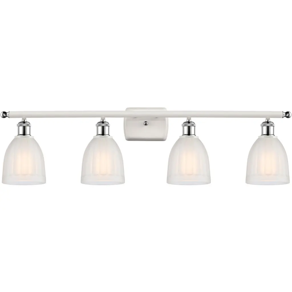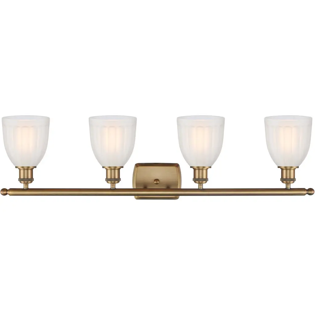 Ballston Brookfield 4 Light 36 Inch Brushed Brass Bath Vanity Light Wall Light In White Glass, Ballston