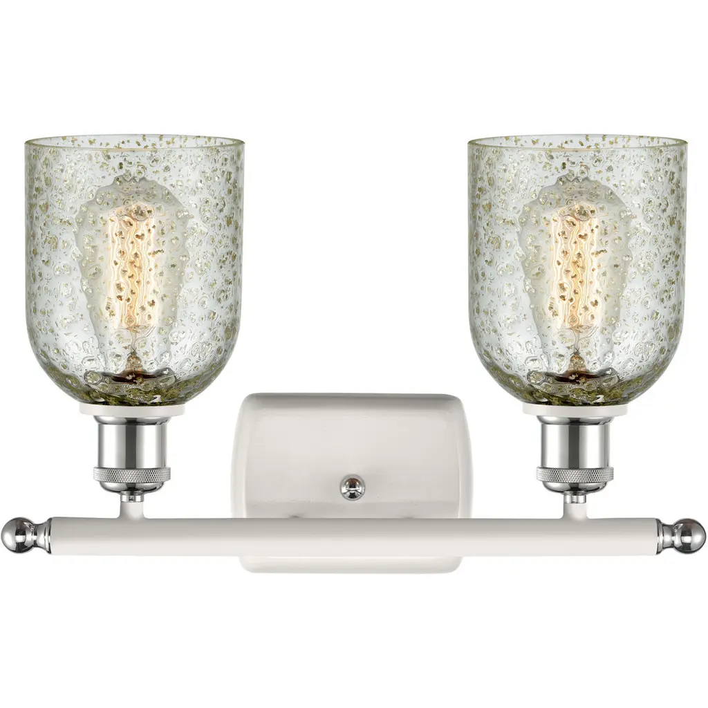 Ballston Caledonia 2 Light 16 Inch White And Polished Chrome Bath Vanity Light Wall Light In Mica Glass, Ballston