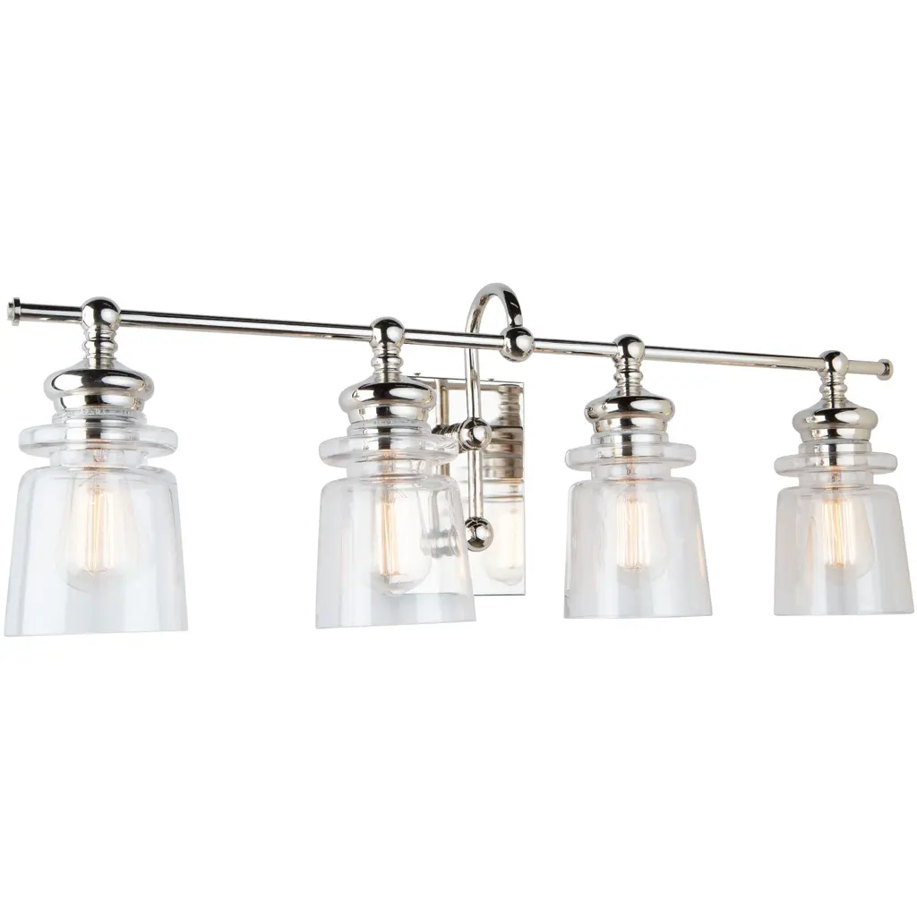 Ballston Candor 4 Light 36 Inch Polished Nickel Bath Vanity Light Wall Light In Clear Waterglass, Ballston