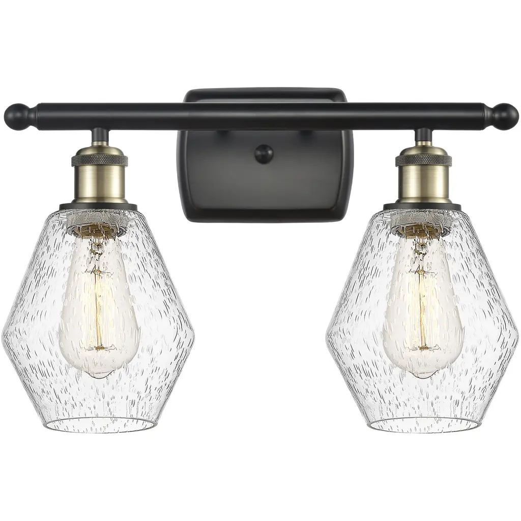 Ballston Cindyrella 2 Light 16 Inch Matte Black Bath Vanity Light Wall Light In Incandescent, Seedy Glass