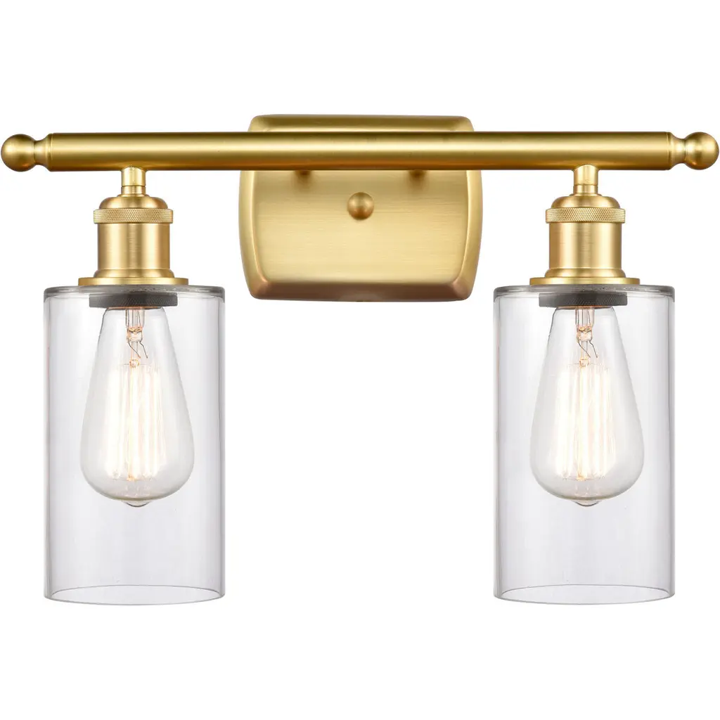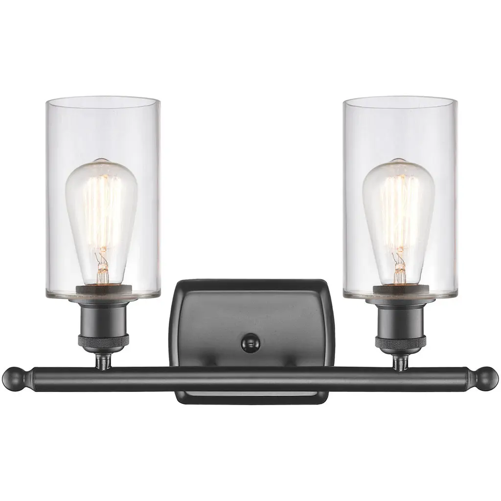 Ballston Clymer 2 Light 16 Inch Oil Rubbed Bronze Bath Vanity Light Wall Light In Clear Glass, Ballston
