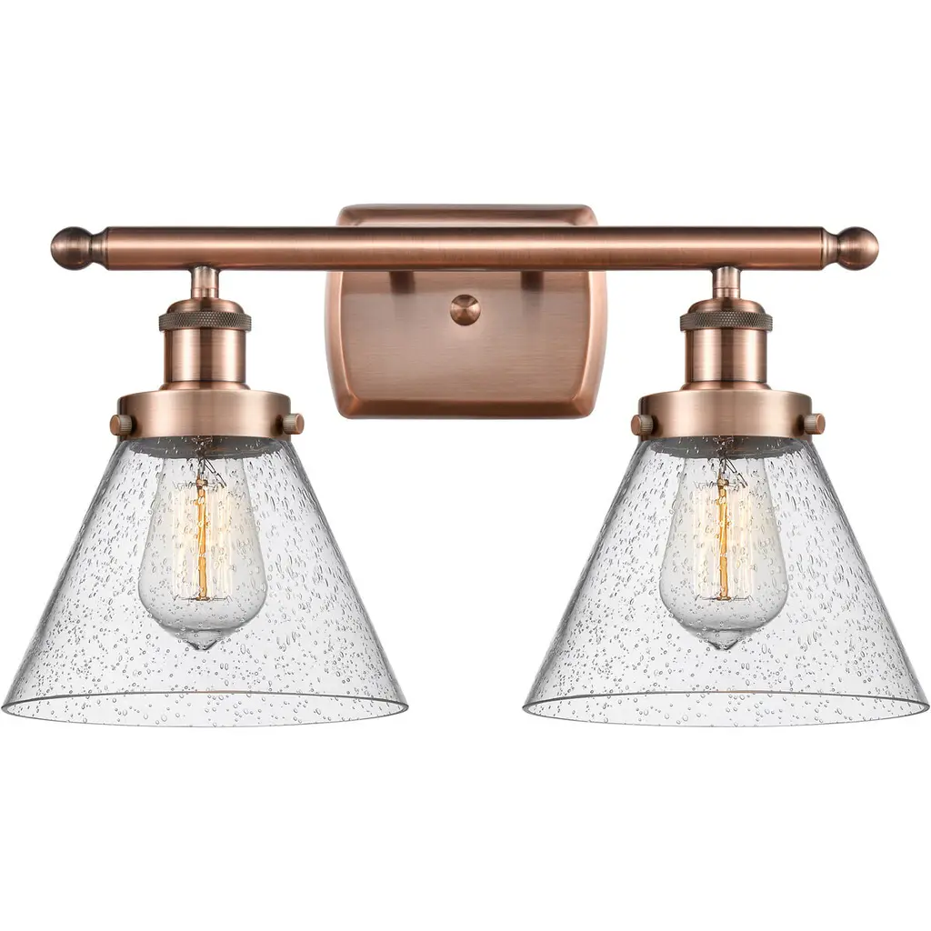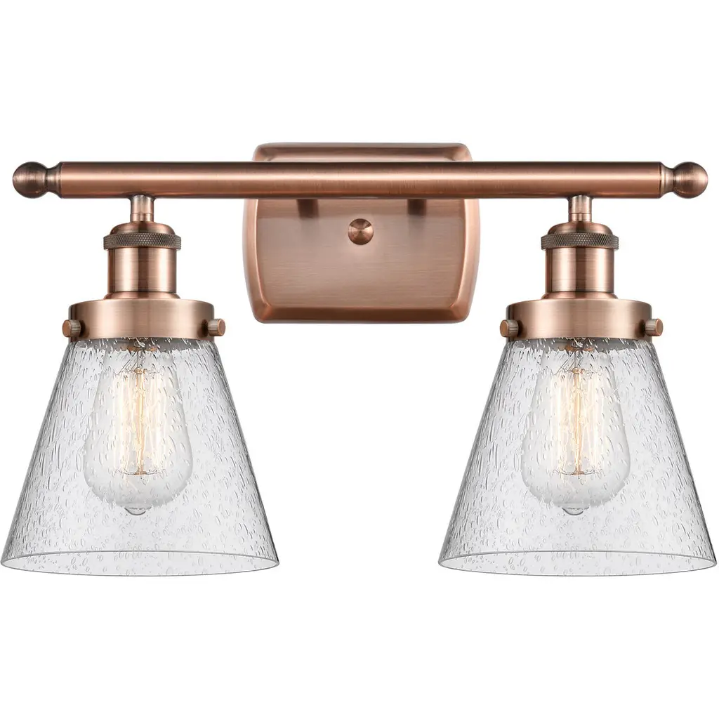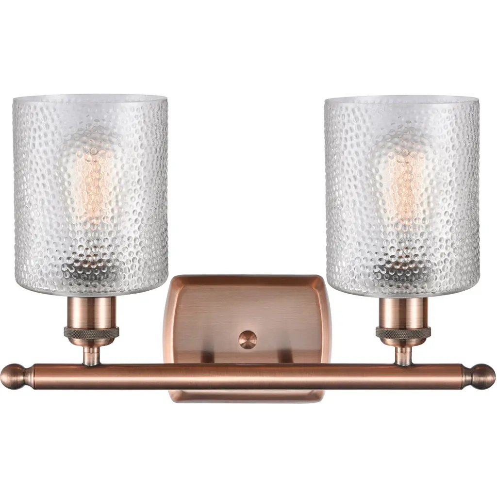 Ballston Cobbleskill 2 Light 16 Inch Antique Copper Bath Vanity Light Wall Light In Clear Glass, Ballston
