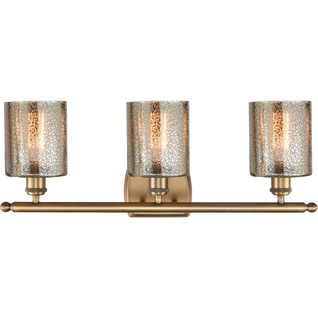Ballston Cobbleskill 3 Light 26 Inch Brushed Brass Bath Vanity Light Wall Light In Mercury Glass, Ballston