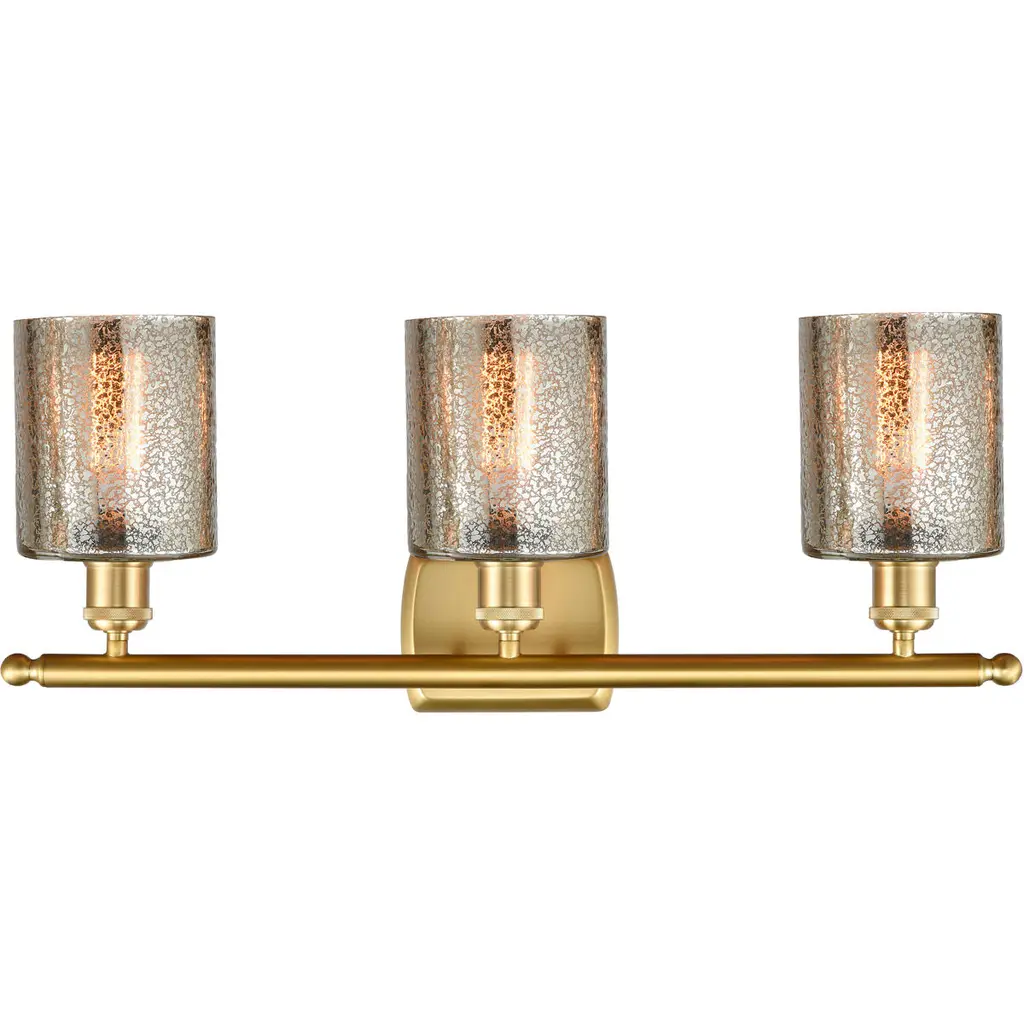 Ballston Cobbleskill 3 Light 26 Inch Satin Gold Bath Vanity Light Wall Light In Mercury Glass, Ballston