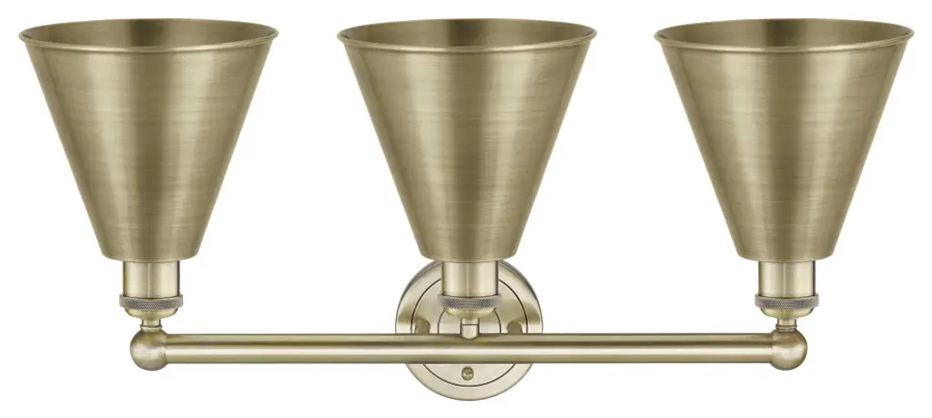 Ballston Cone 3-Light 26" Bath Vanity Light, Antique Brass
