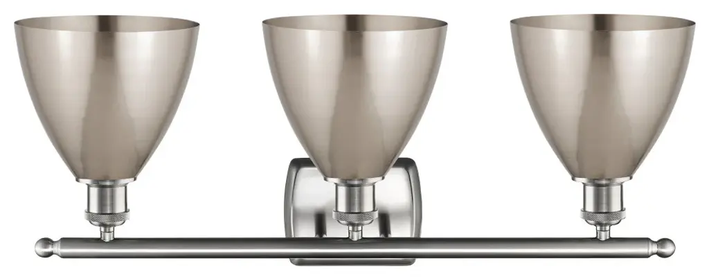 A truly dynamic fixture, the Ballston fits seamlessly amidst most decor styles. Its sleek design and vast offering of finishes and shade options makes the Ballston an easy choice for all homes.Features:Fixture can be hung with bulbs facing up or down4.5" x 6" 2mm heavy cast backplateThe interior finish of the shade matches the exterior finish of the shadeDistance from outlet opening to top of fixture 2.25 inchesRated for 100 watt maximum per socketUL/CUL Damp RatedCompatible with Incandescent, LED, Fluorescent and Halogen bulbsNumber of Bulbs: 3Bulb Wattage: 3.5Bulb Type: LEDBulb Included: IncludedVoltage: 120Finish: Brushed Satin Nickel
