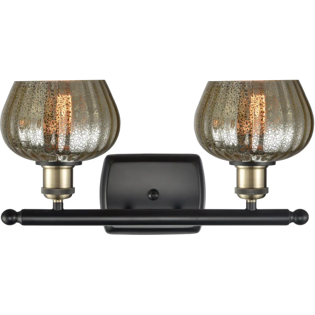 Ballston Fenton Led 16 Inch Black Antique Brass Bath Vanity Light Wall Light In Mercury Glass, Ballston