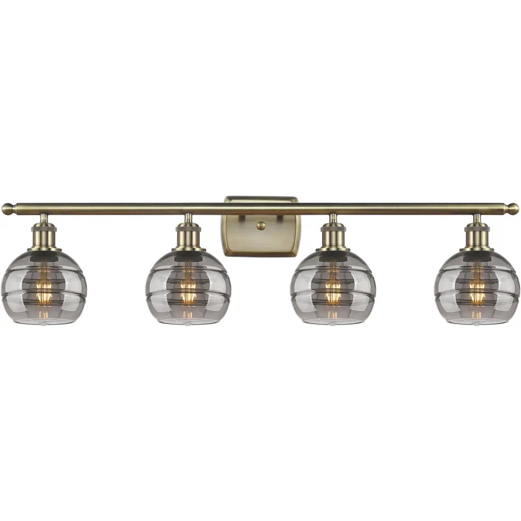 Ballston Rochester 4 Light 35.88 Inch Antique Brass Bath Vanity Light Wall Light