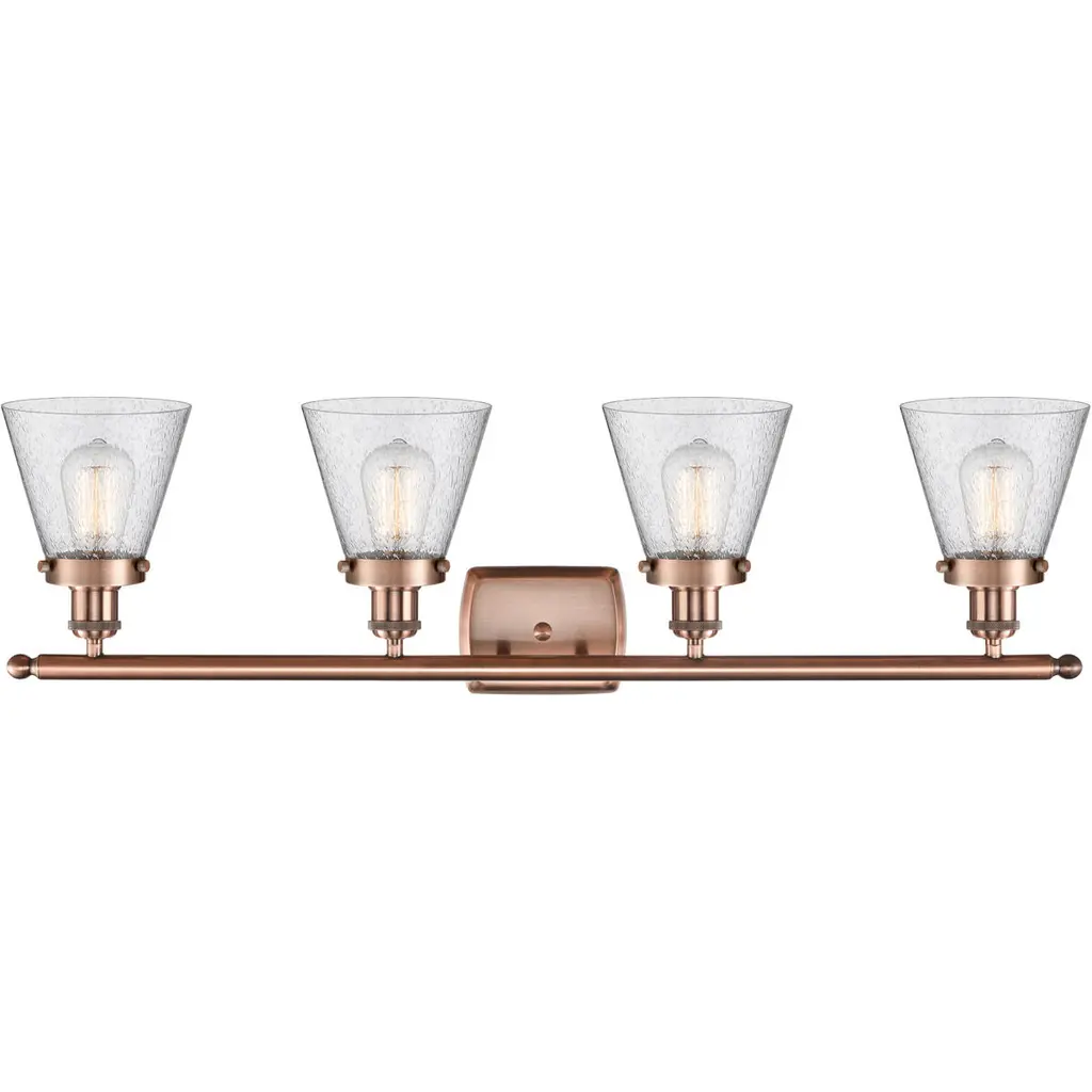 Ballston Small Cone Led 36 Inch Antique Copper Bath Vanity Light Wall Light In Seedy Glass