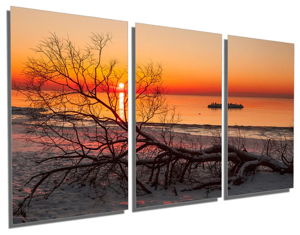 Baltic Sea Winter Sunset Metal Print Wall Art, 3 Panel Split, Triptych, 60x30