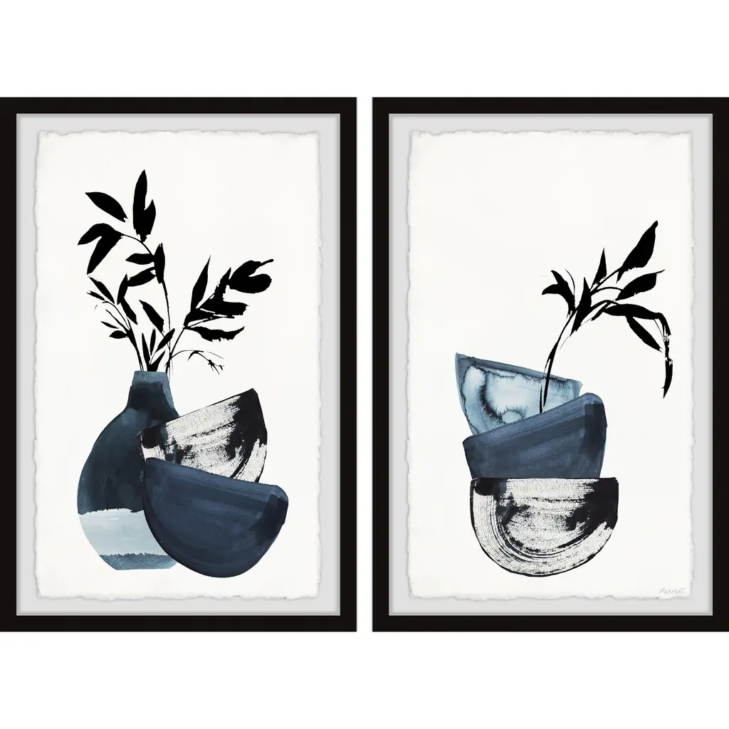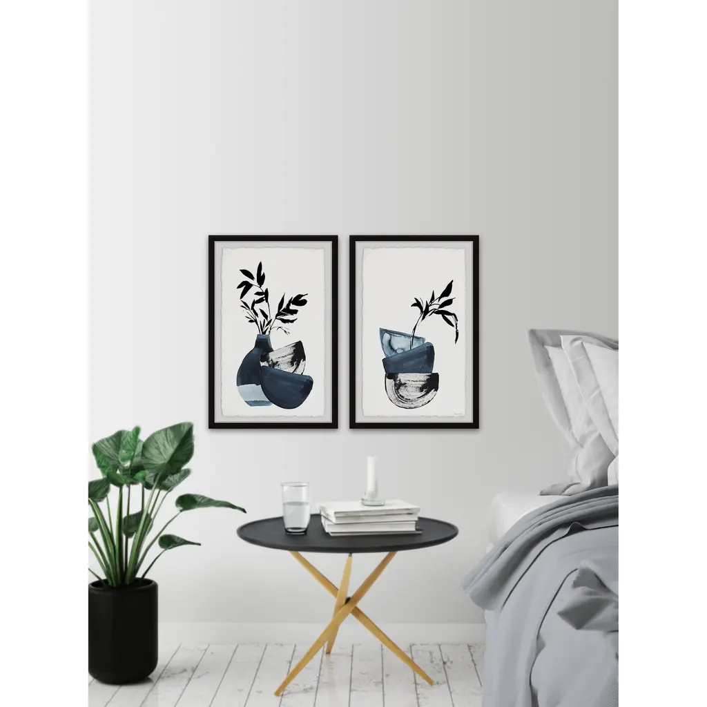 Turn any bare wall into a contemporary focal point by putting this duo of watercolor painting prints on display. These black, blue, and white prints feature a geometrical, abstract take on potted plants. Proudly printed in the USA, this piece is printed on high quality archive paper and professionally hand-framed. With wall-mounting hooks included, this artful accent is ready to hang up as soon as it reaches your front door. • Top quality Giclee print on high resolution Archive Paper • Hand cut deckled edges • High quality durable non-warping frame • Finished under shatter resistant plexiglass • Arrives ready to hang • Includes a certificate of authenticity • Printed in the USA