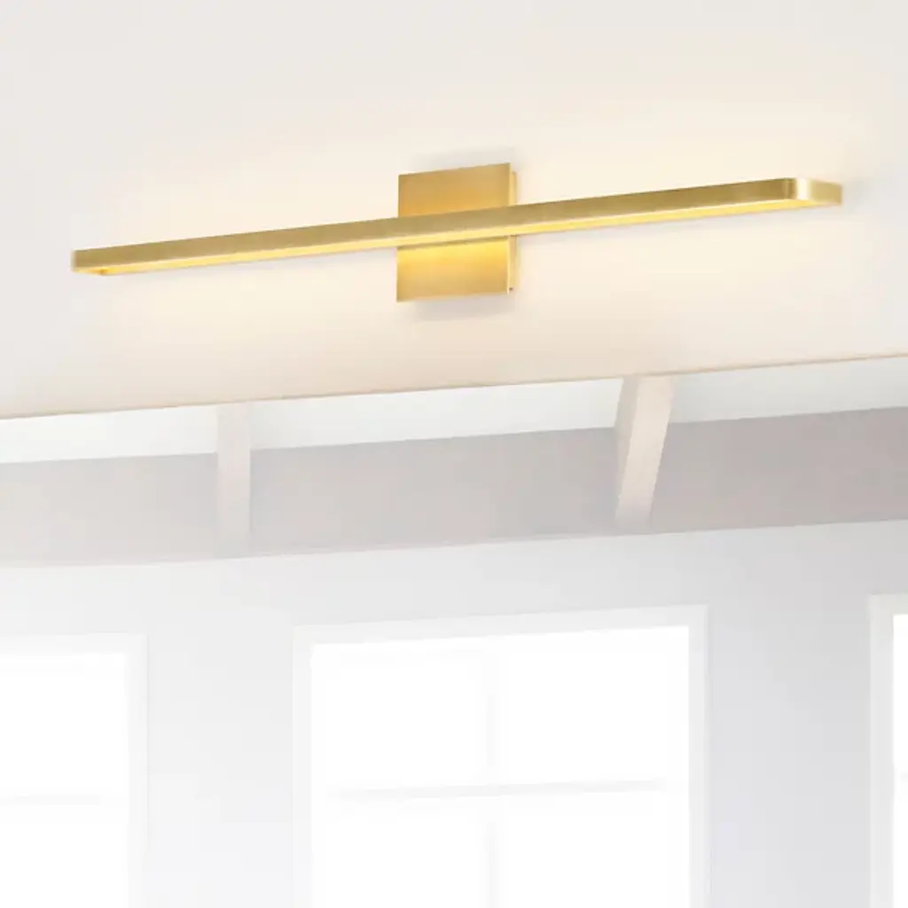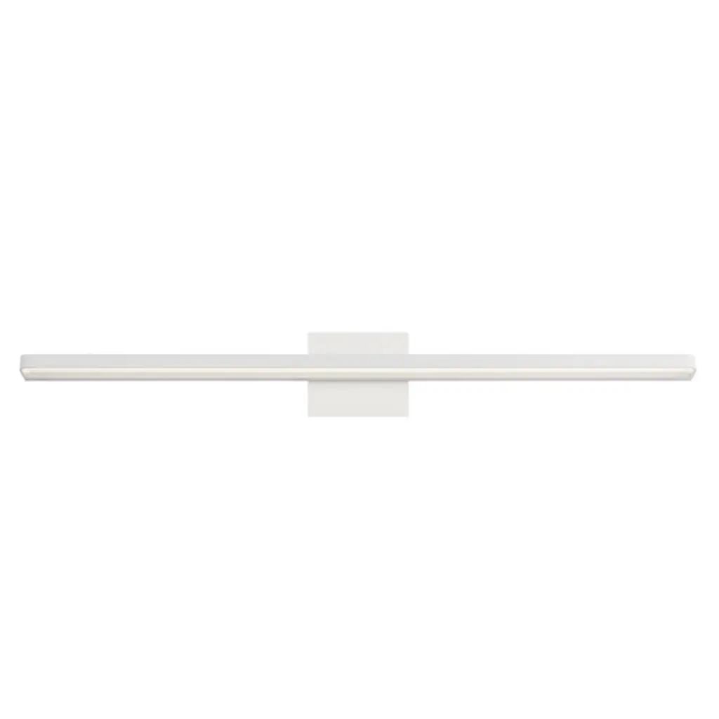 Straightforward sophistication defines the Banda LED Vanity Light by Visual Comfort Modern, formerly known as Tech Lighting, Presenting a clean and minimal design, this fixture is constructed from a smooth band of metal that is held horizontally from a square backplate. The metal frame reaches wide to surround a clear acrylic panel set at its center. An integrated LED is concealed within the frame and glows through the clear panel to offer a delicate illumination throughout the space.