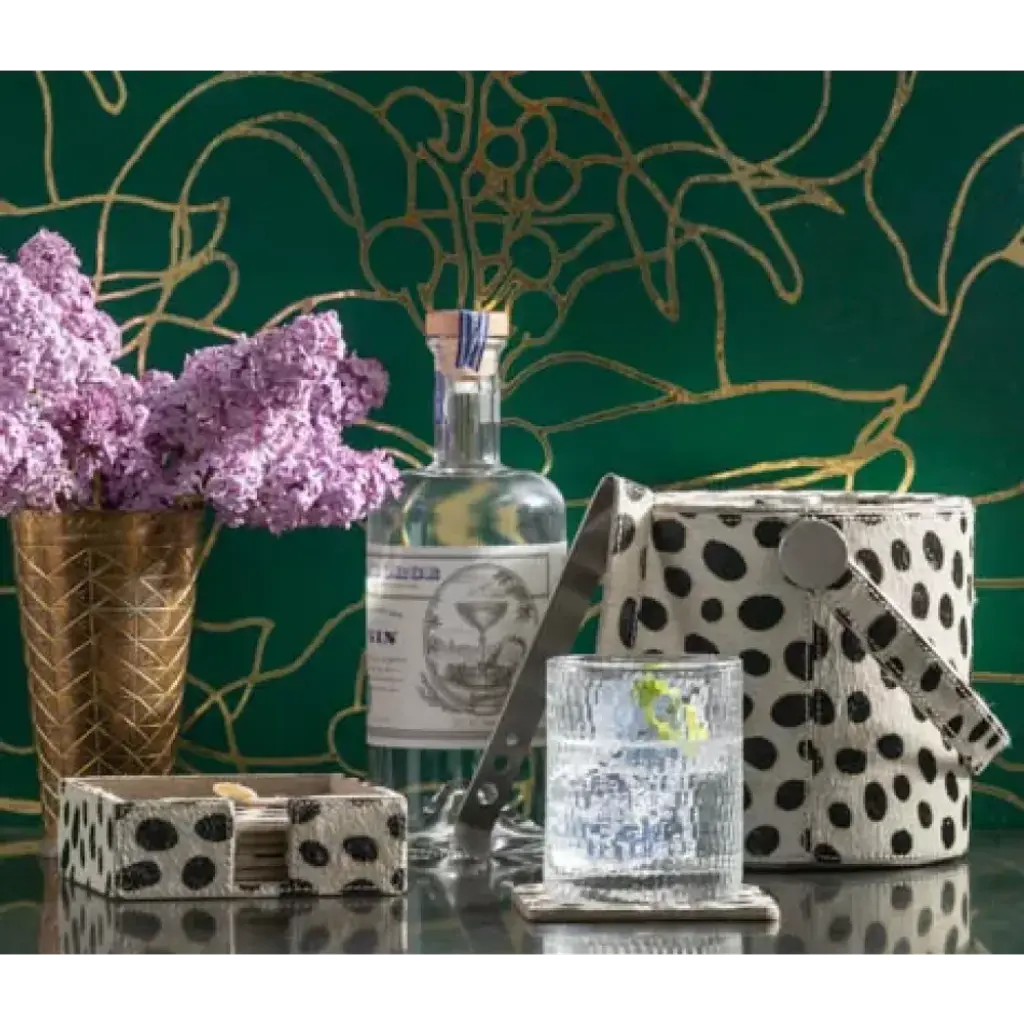 Bandar Dalmatian Print, Ice Bucket W/ Tong, Round, Hair-On-Hide