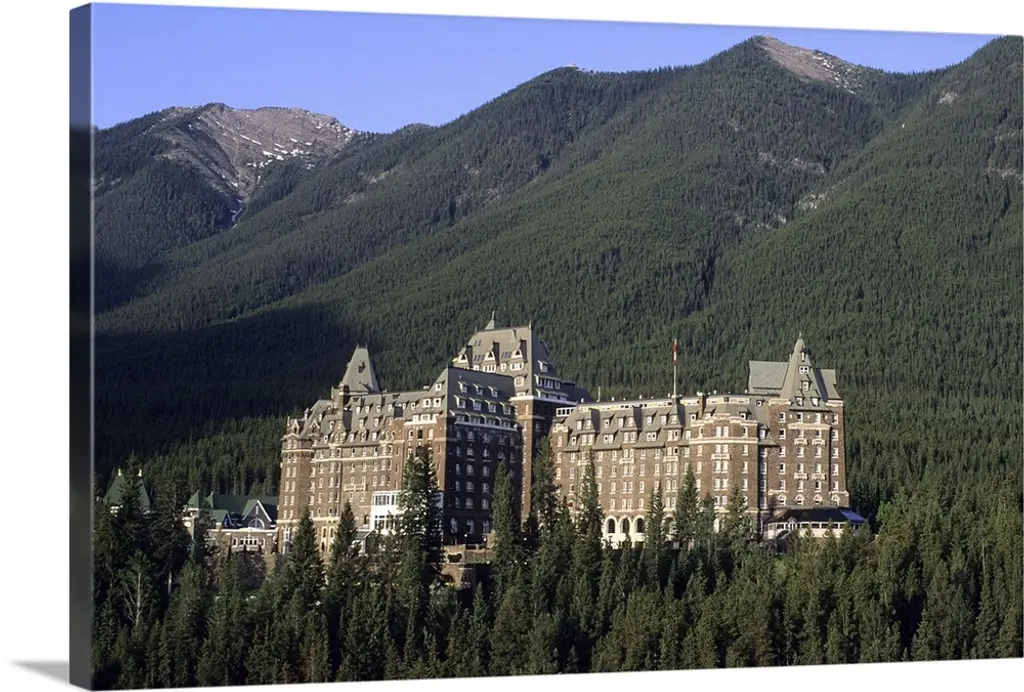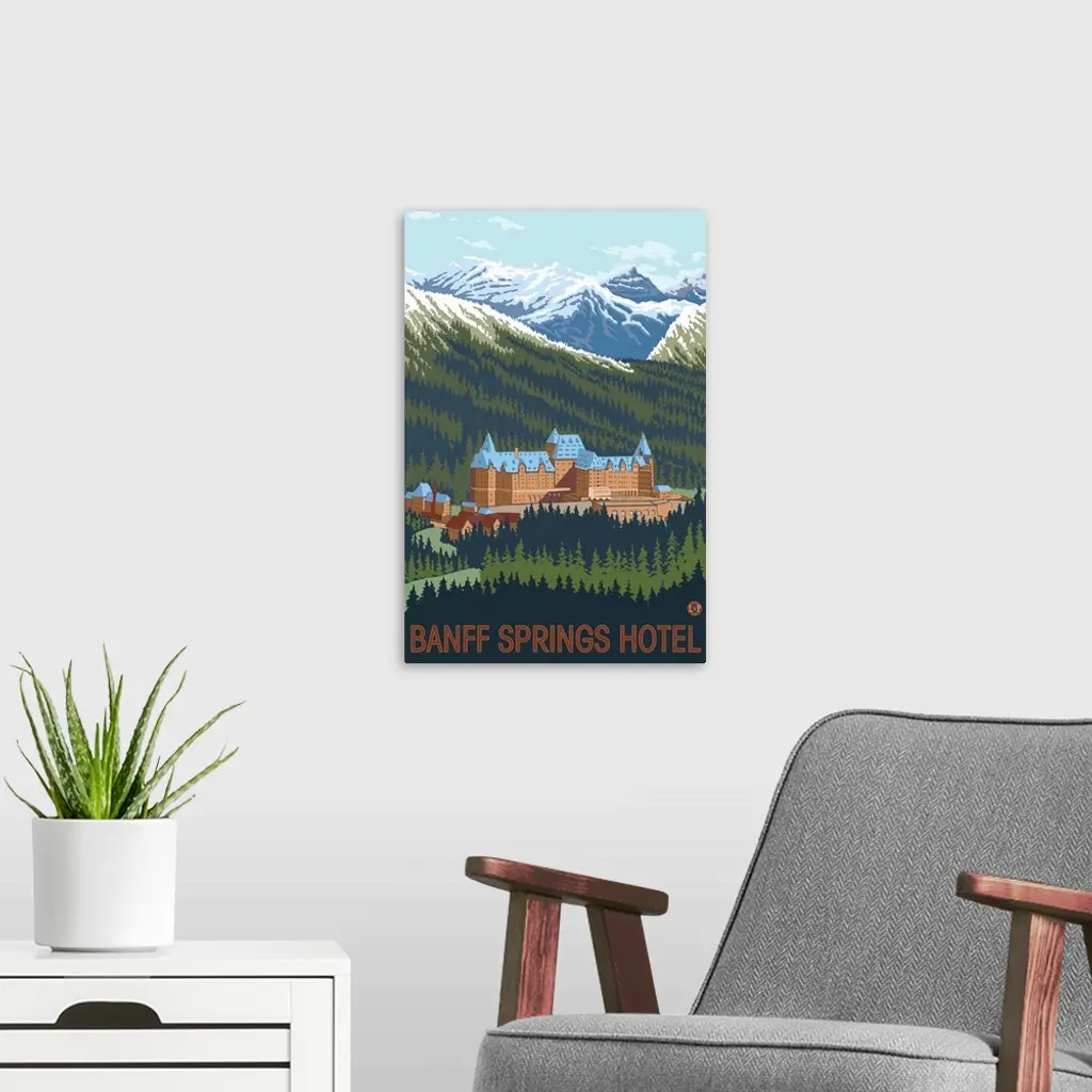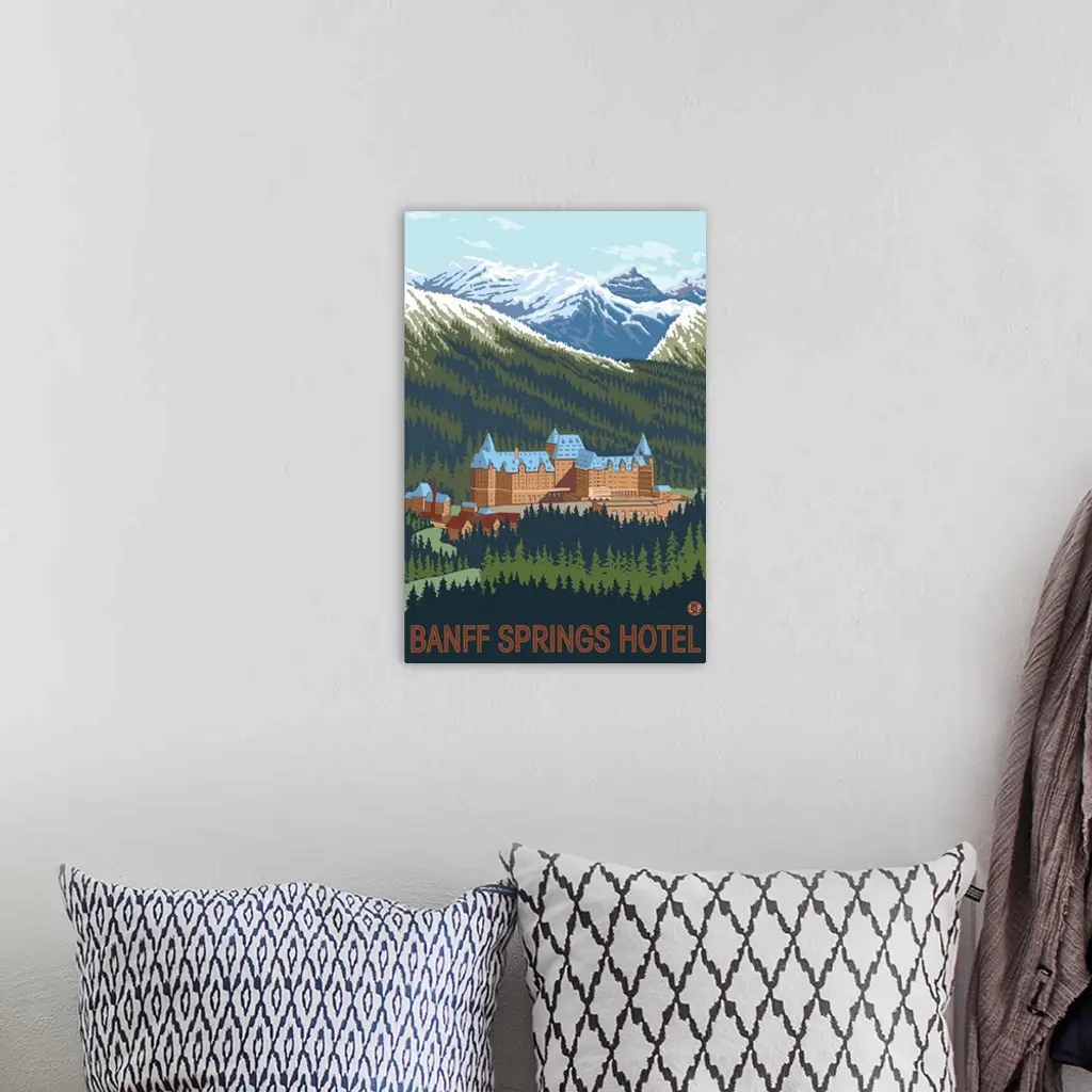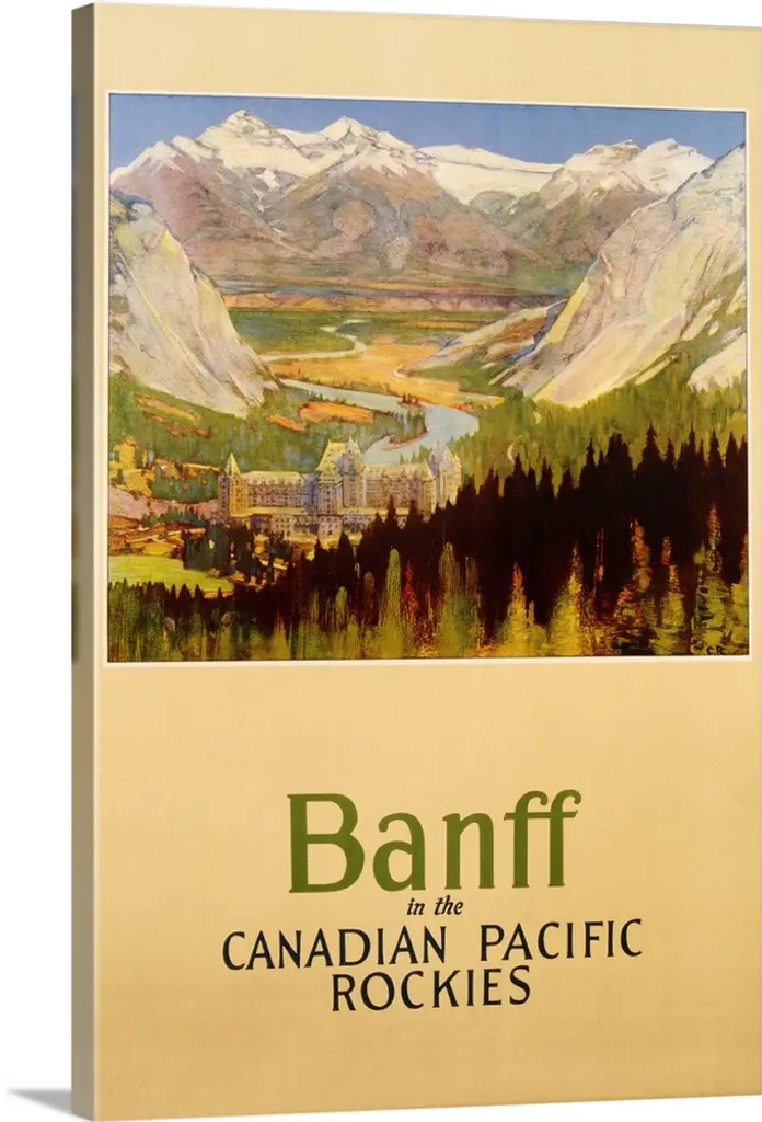 Banff, Canada - Banff Springs Hotel: Retro Travel Poster wall art for home and office decor. Discover canvas art prints, photos, mural, big canvas art and framed wall art in GreatBigCanvas.com's varied collections.