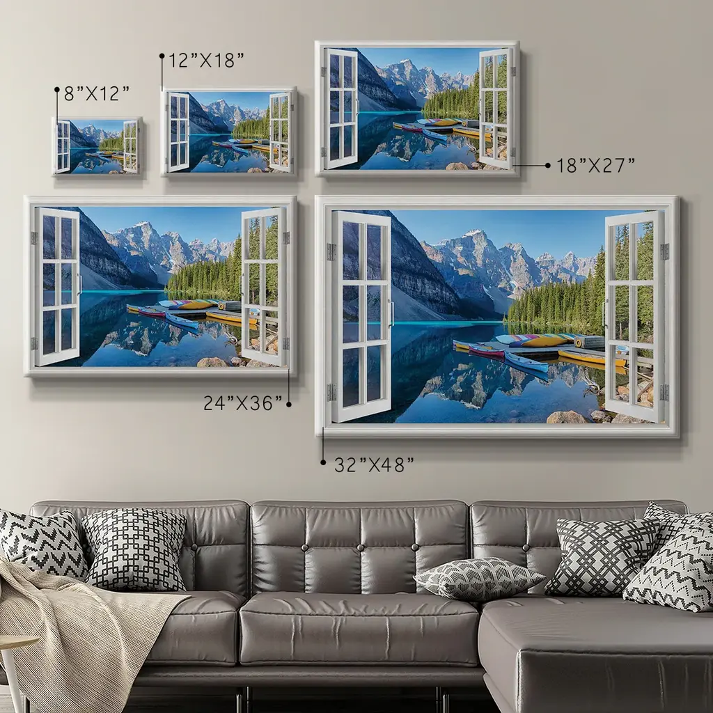Banff Canoe Premium Gallery Wrapped Canvas - Ready to Hang A premium hand stretched gallery wrapped canvas print created to last. Featuring a beveled a solid wood stretcher bar, each piece comes ready to hand 6 SIZES AVAILABLE 8''X12'' - Overall Size 12''X18'' - Overall Size 18''X27'' - Overall Size 24''x36'' - Overall Size 32''x48'' - Overall Size 40''x60'' - Overall Size Each piece is made to order. Built to Last Each piece comes ready to hang Solid wood stretcher Fade and Water resistant Made domestically