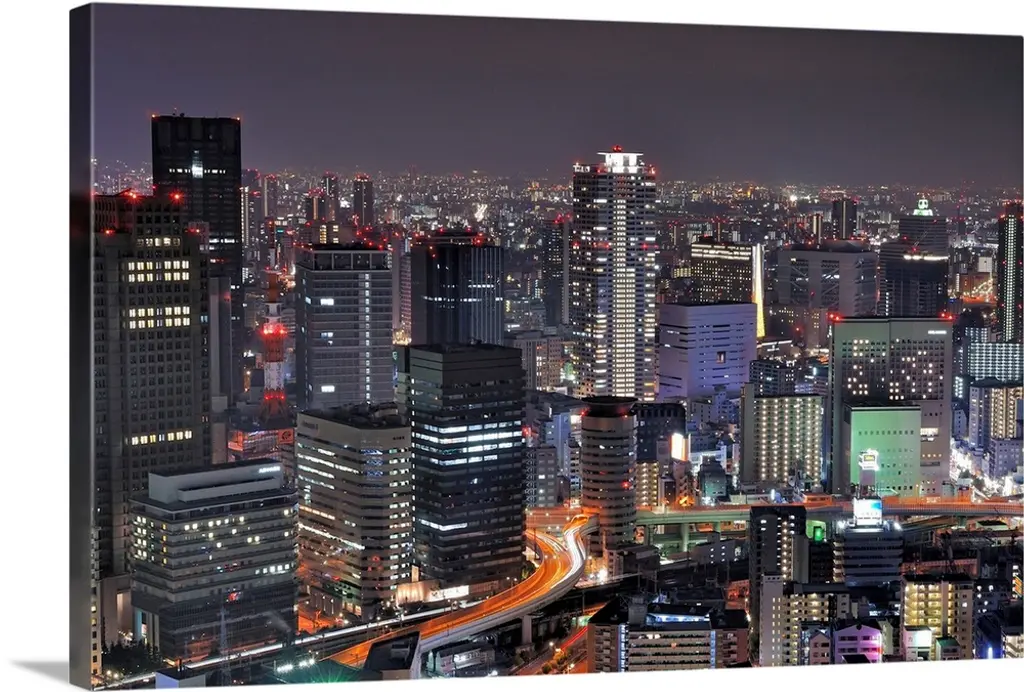 "Bangkok City Night View" Cityscape Canvas Photo Print, 20"x12"