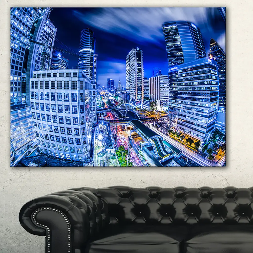 "Bangkok City Night View" Cityscape Canvas Photo Print, 32"x16"