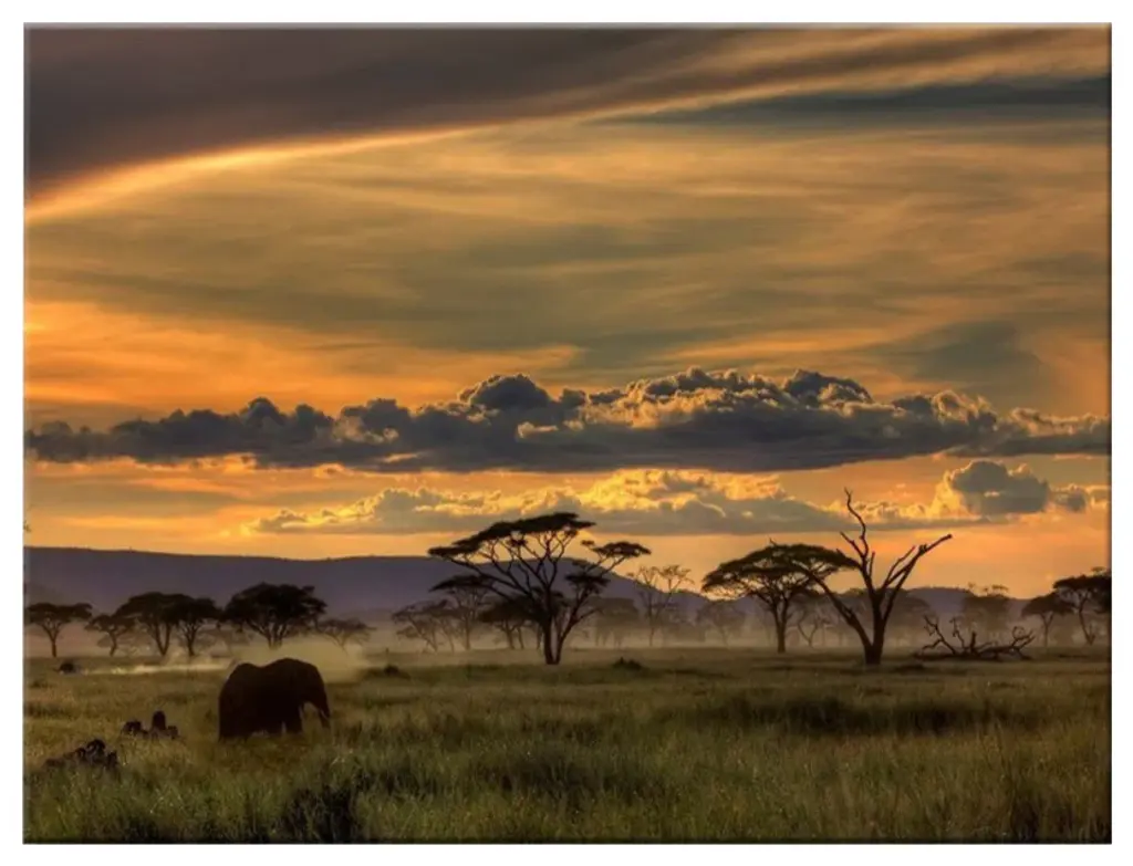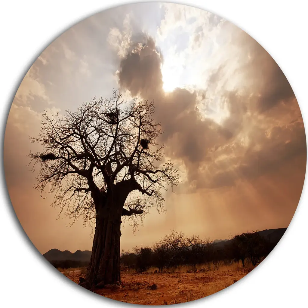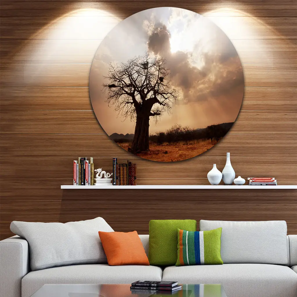 Baobab Tree Under Clouds, Modern Landscape Round Wall Art, 36"