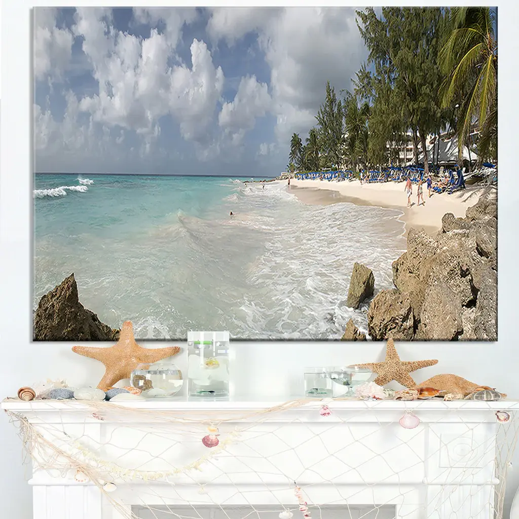 The Barbados Island White Seashore canvas art print is sure to make an impression on anyone who sees it. This artwork is gallery wrapped around a 1-inch solid wood frame and arrives carefully packaged and entirely ready to hang on the wall. Design Art only uses the highest resolution and pigments to ensure a crisp colorful print that is never faded or pixelated. This artwork is sure to be a conversation starter in any home or office.