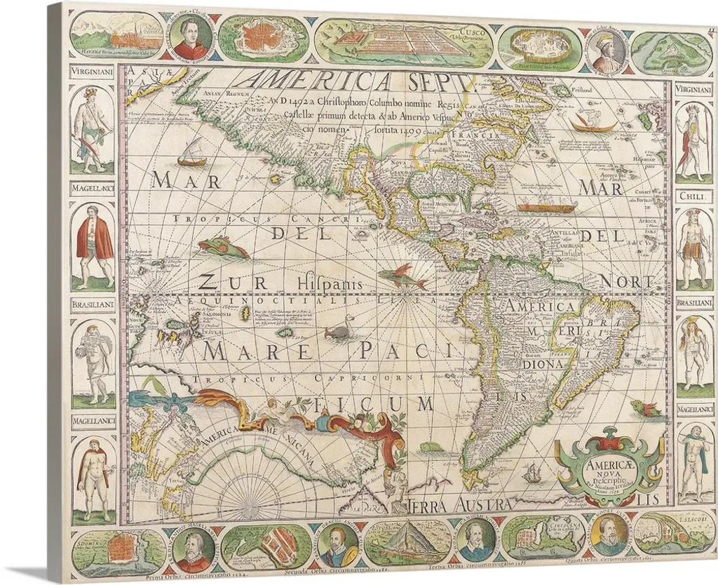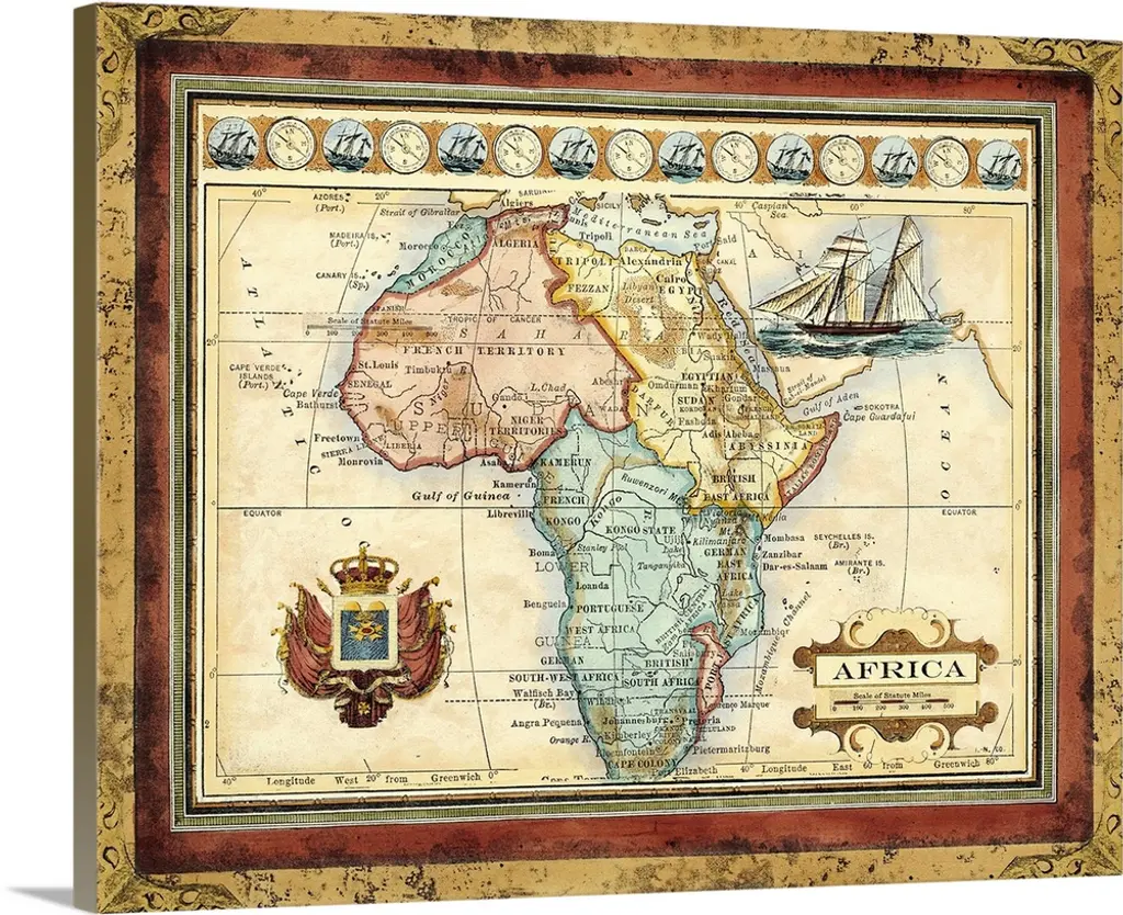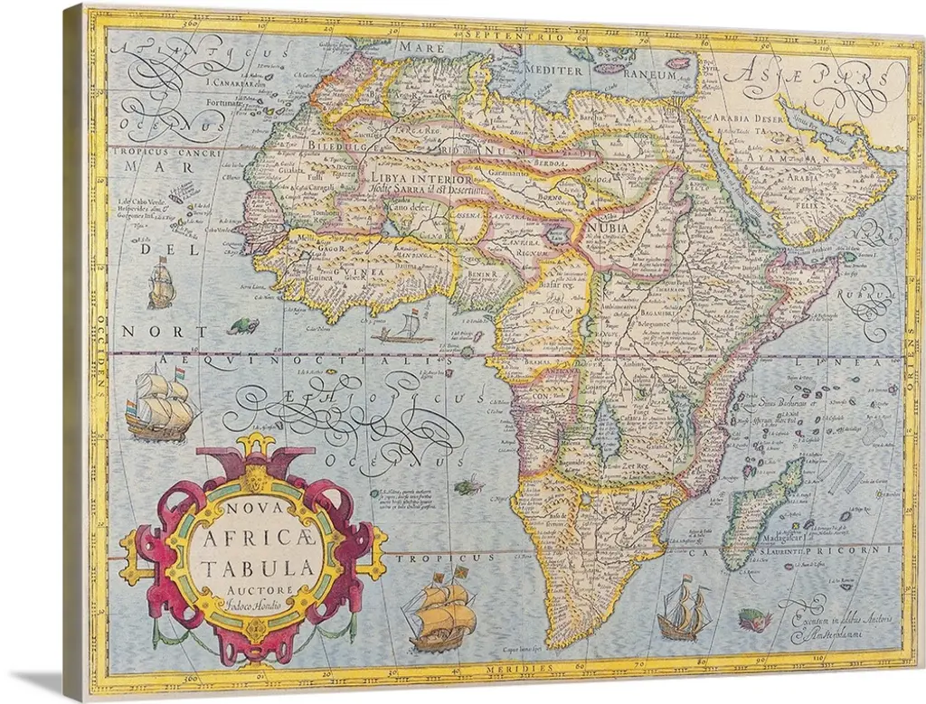 Barbary, Coast Of North Africa Map Print On Canvas With Black Frame, 28" X 37"
