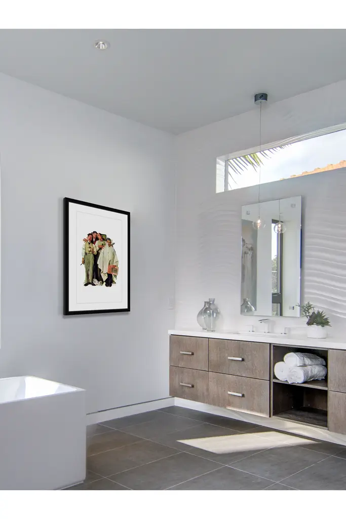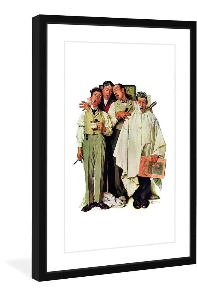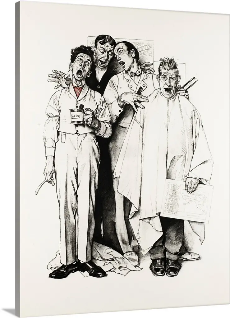 "Barbershop Quartet" Framed Art Print by Norman Rockwell features vivid tones and supple artistry. Mounted in a gorgeous frame, this 16 inch wide by 24 inch tall piece will be an exceptional addition to any room.Top quality Giclee print on high resolution Archive PaperProfessionally framed and mounted on acid free archive mattsHigh quality durable non-warping frameArrives ready to hangNorman Rockwell was one of America's leading artists. He chose t