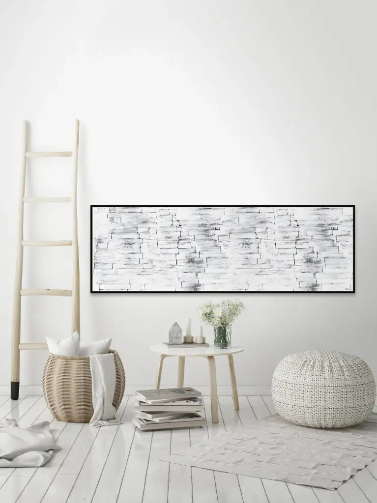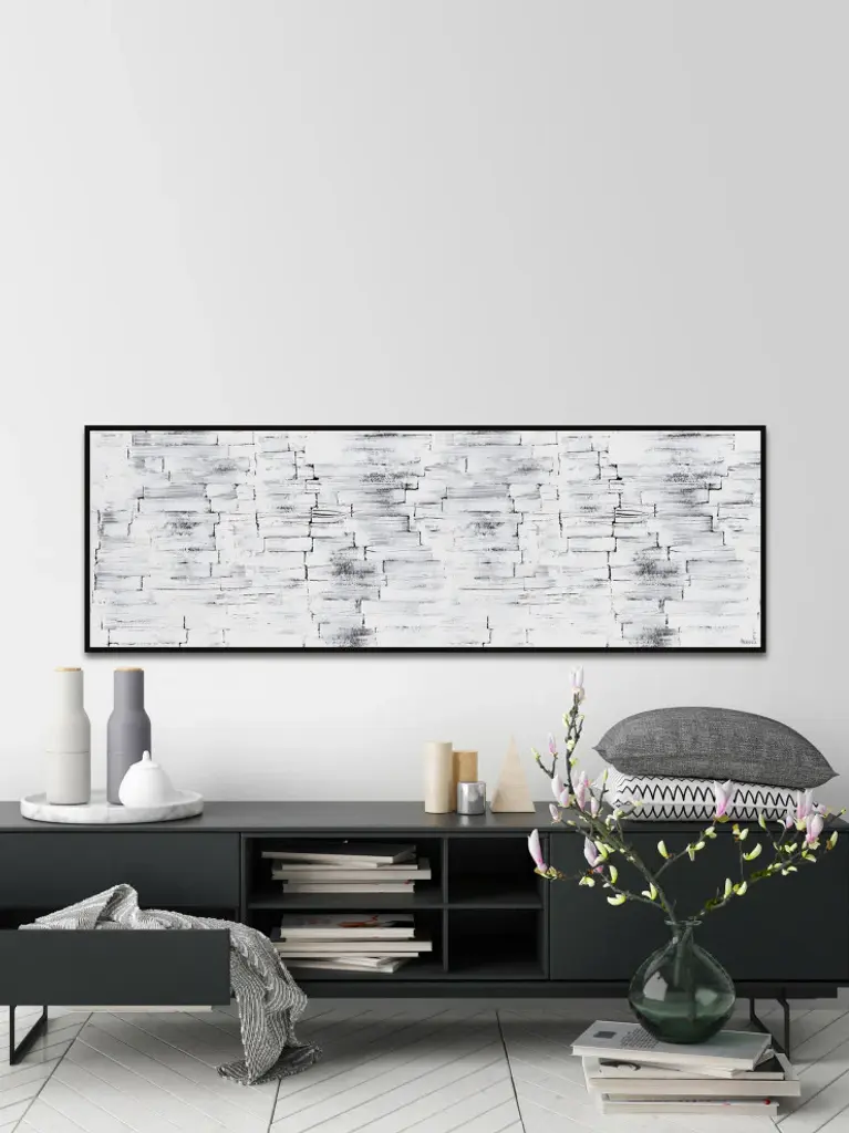 Transform your wall with this horizontal acrylic painting print that features a white and black abstract design. Proudly printed in the USA, this piece is printed on canvas before it''s stretched, and framed and mounted in a non-warping floater frame thereafter. With wall-mounting hooks included, this artful accent is ready to hang up as soon as it reaches your front door.Canadian artist, Parvez Taj uses water paints, photographs, software, and UV cured inks to create his wall art. His artwork connects the out-of-reach luxury art world with the modern, fashion-conscious home decorator by delivering high quality artwork that is both affordable and hip.Durable art print on high quality canvas by Parvez TajProfessionally hand stretchedFramed and mounted in non-warping floater frameArrives ready to hangIncludes a certificate of authenticityArtist signature on the front
