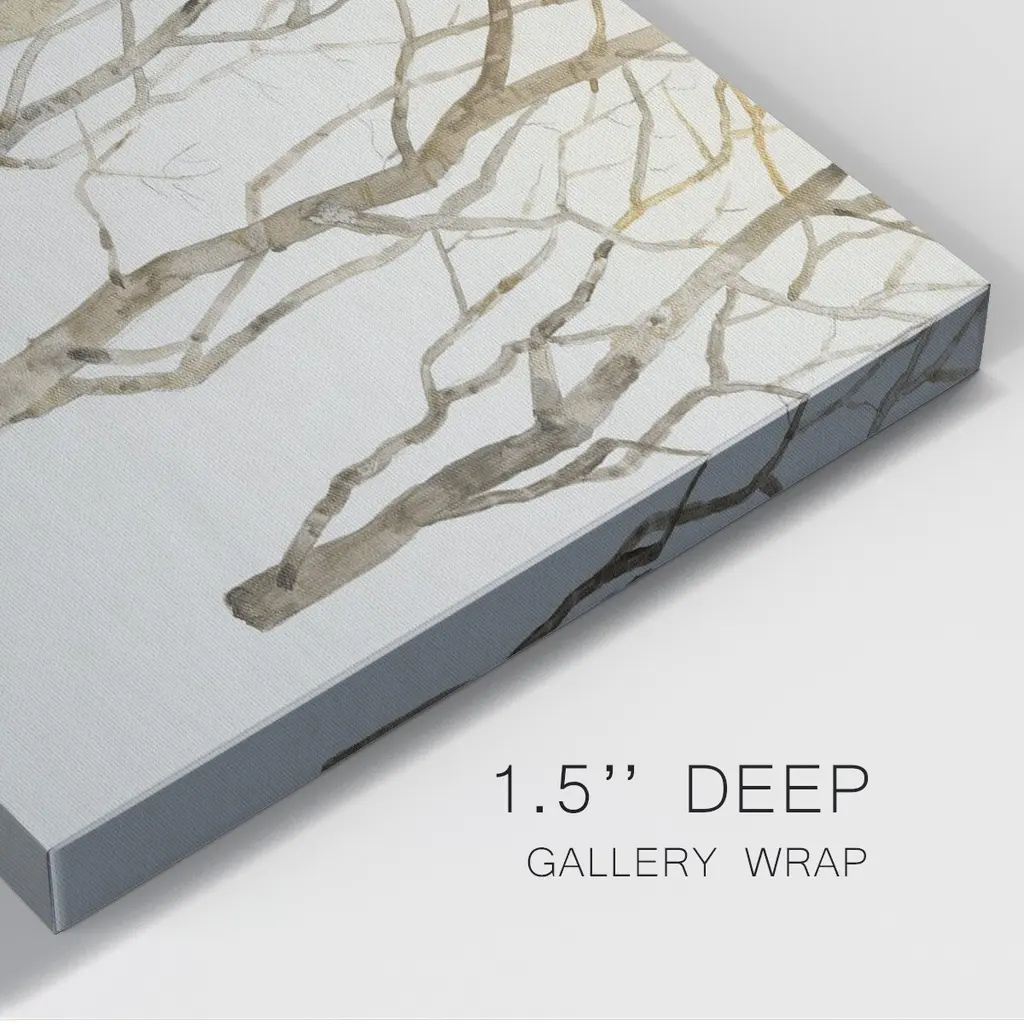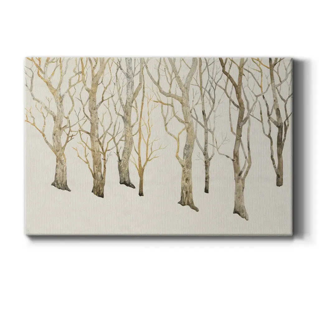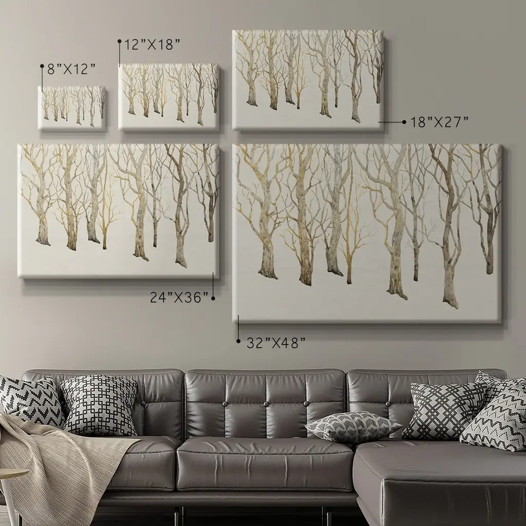Bare Trees II Premium Gallery Wrapped Canvas - Ready to Hang A premium hand stretched gallery wrapped canvas print created to last. Featuring a beveled a solid wood stretcher bar, each piece comes ready to hand 6 SIZES AVAILABLE 8''X12'' - Overall Size 12''X18'' - Overall Size 18''X27'' - Overall Size 24''x36'' - Overall Size 32''x48'' - Overall Size 40''x60'' - Overall Size Each piece is made to order. Built to Last Each piece comes ready to hang Solid wood stretcher Fade and Water resistant Made domestically